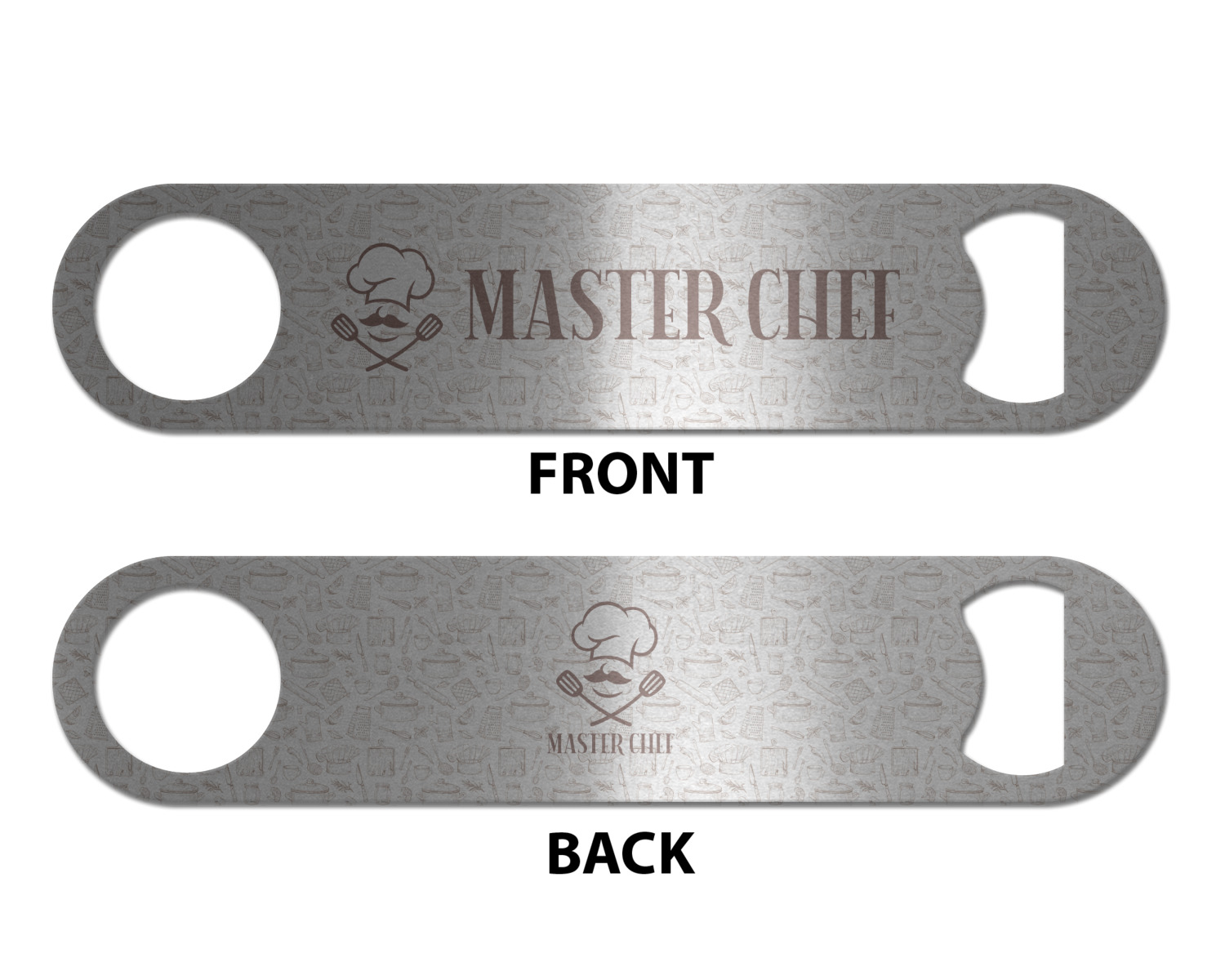 Stop struggling with the caps or your bottled beverages by purchasing one of our personalized bottle openers! These wrench-like custom bar blades are built to last. Customize one for your home's bar, or as a practical gift for a loved one!