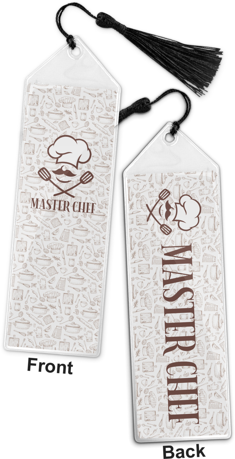 Your personalized bookmark is made of a sturdy, clear vinyl, and is approximately 7.5" x 2.25". We display your personalization on vinyl inserts that are placed on both sides. Accompanying each book marker is a black, fringe tassel that attaches to the reinforced, triangular header.