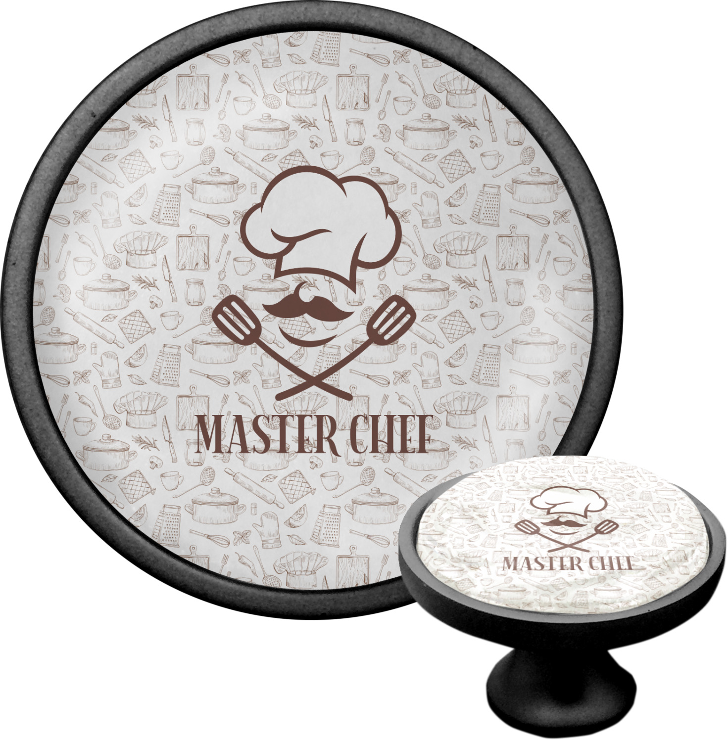 We sell these cabinet pulls in two different colors to better match your room's color scheme. We offer an oil-rubbed bronze base that is black in color, and a satin nickel option, which has a silver color. Your design is displayed across a high gloss vinyl insert that is placed on top of these cabinet handles. We then place a 1 inch thick glass cabochon atop the design, which seals the cabinet knob and makes the colors of your customization stand out. These custom cabinet knobs are approximately 1.3 inches in diameter. Your purchase includes a 1 inch screw that can be used to mount the knob to any cabinet in your home.