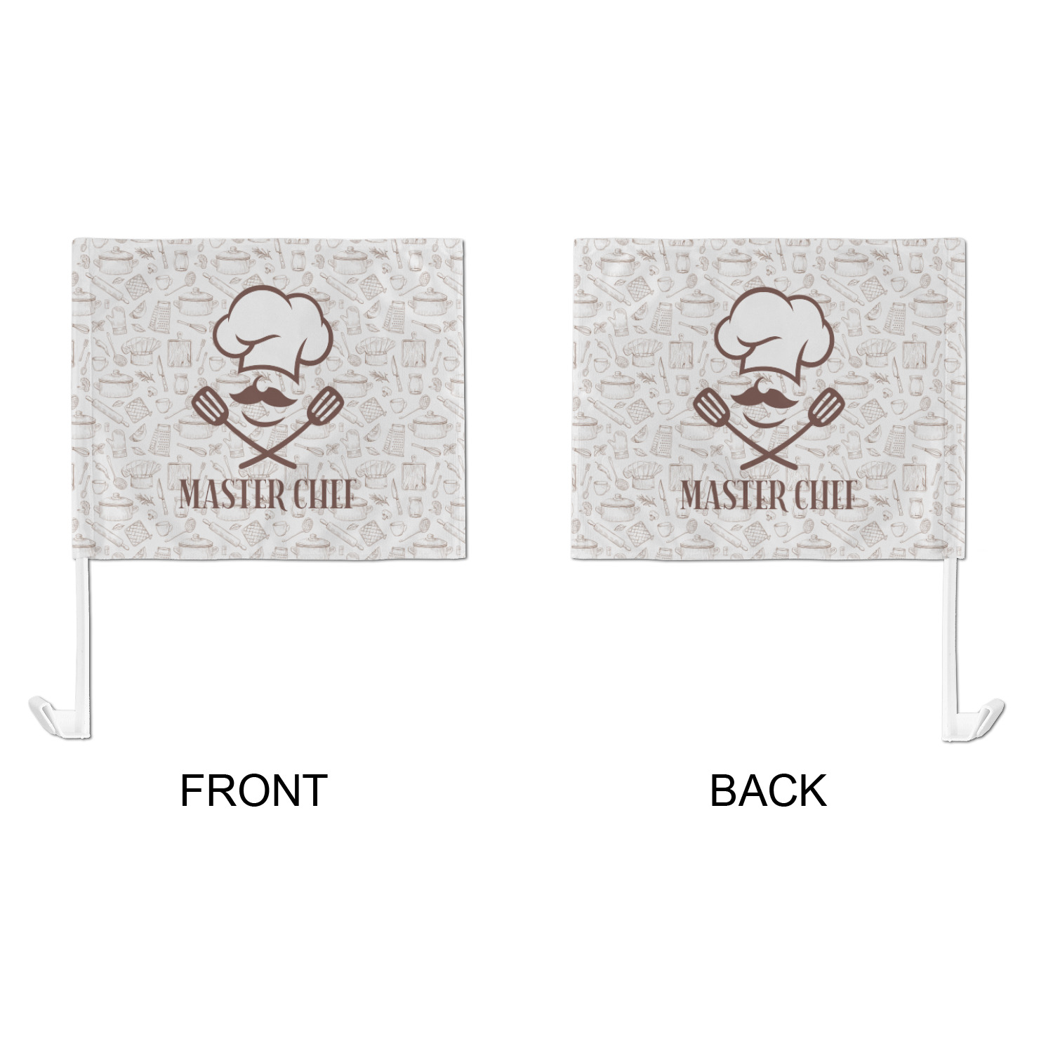 Our personalized flags are made from a durable, yet lightweight cloth that will proudly bear your logo or design of choice, while withstanding the outside elements. We have two size options - 8" x 11" and 11" x 15". Both come with a flag pole which includes a clip that secures the pole to the side window, whether it is rolled up or down. The flags are printed on both sides to display your design from all directions.