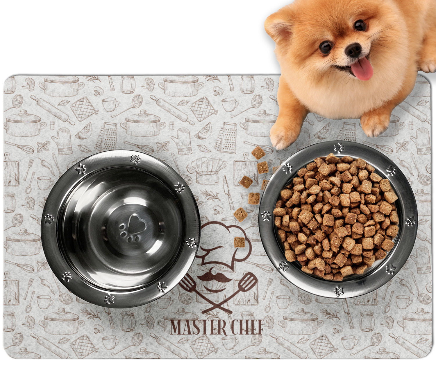 Frustrated with the mess your pets make during mealtime? Personalize a multi-functional dog food mat that prevents spills from reaching your floors, while also incorporating some cute decor to your dog's eating area!