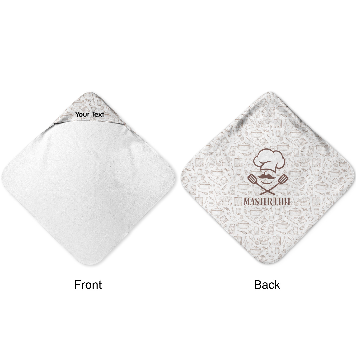 This baby towel is made with a plush microfiber velour and cotton terry. and thus will be soft and gentle against your newborn's skin, but also, very absorbent. Your customization is printed across the front & the hood, while the inside is a classy white.