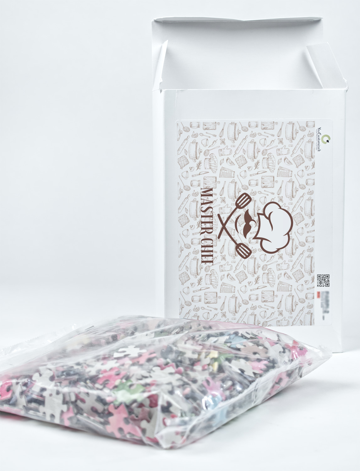 You can also upload your logo or art that you or your kids drew. To create more challenging jigsaw puzzles, you can create a pattern from with your logo or artwork. You can also add other elements such as text or personalization.