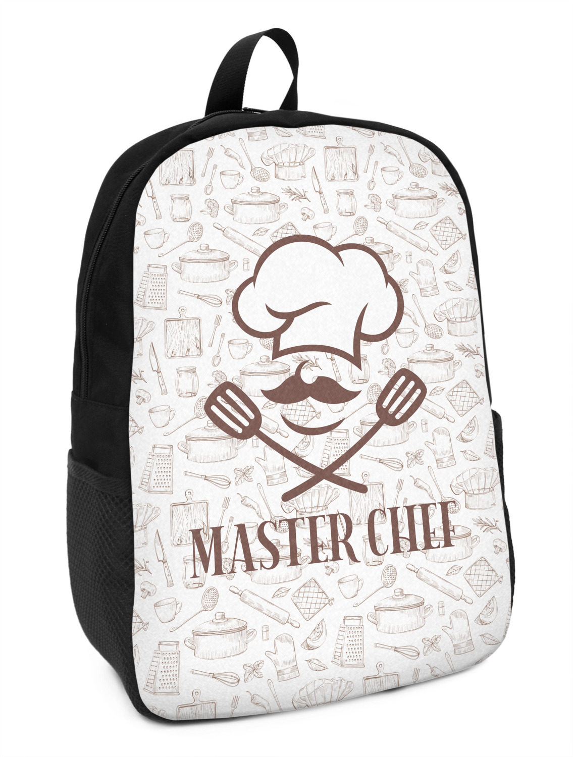 These small backpacks are made of a durable black canvas material with your personalization right on the front. The two shoulder straps are padded and easily adjustable. The bag itself measures at about 11" W x 15" H x 5" D. It's the perfect size for elementary aged kids or adults who want a smaller backpack. On the top of the bag you will find a handle to hang or carry your backpack by as well as a large zipper closure to keep all of your belongings safe inside. On each side of your backpack is a mesh pocket for a small item or water bottle. Inside your backpack you will find a spacious area with a small zipper pocket and a padded laptop slot that will fit up to a 13" laptop (13" being very snug). This is the perfect bag for any student that needs a couple books and their laptop with them at all times. It also works great as a carry on for traveling!
