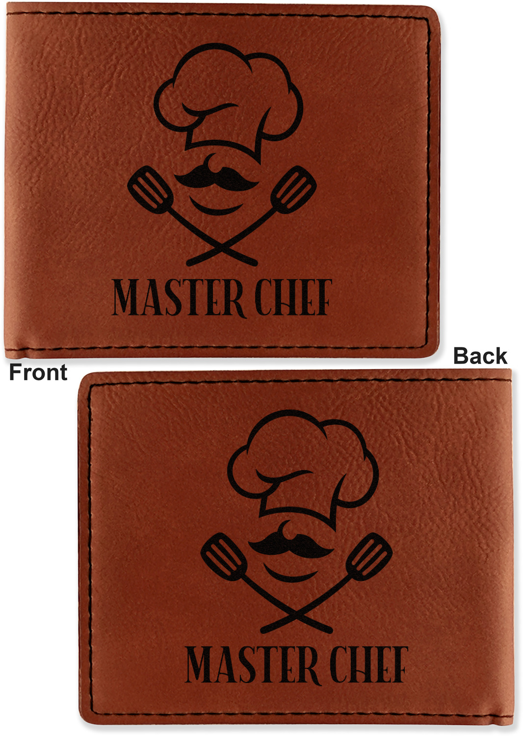 Your bifold wallet will be personalized by laser engraving, which will be a black color on the wallet. Choose a graphic, text, or monogram to personalize your wallet. There are thousands of choices in our design center.