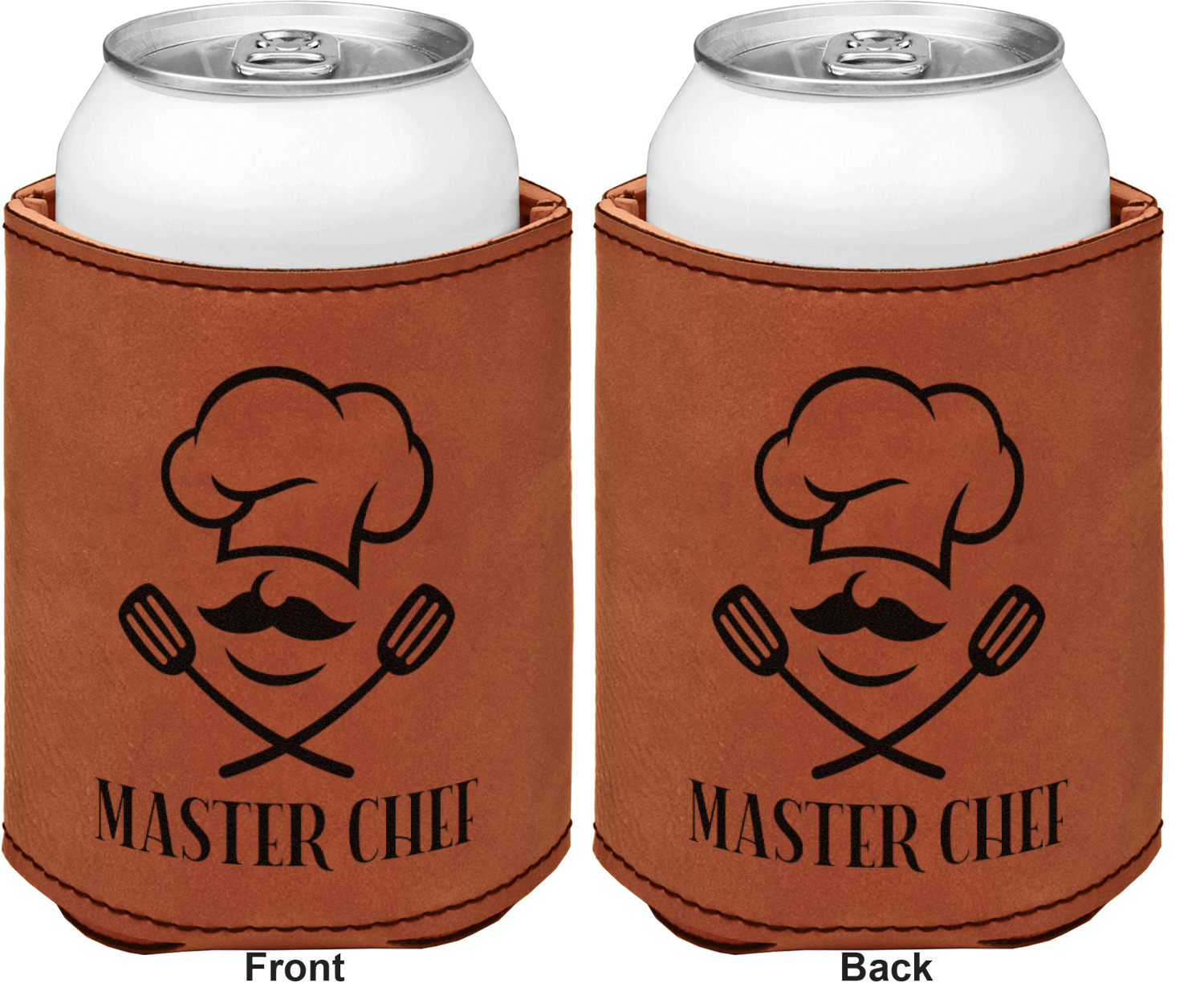 This can sleeve is made from a cognac-brown leatherette and stitched with a sturdy, black thread. A slim padding lines the inside of your can sleeve to allow for a better fit once your drink is inserted. The sleeve itself measures at 4 by 4.5 inches, allowing this custom can sleeve to accommodate most canned drinks. Your personalized design can be engraved on the front and back, or solely the front. When laser-engraved, your design appears as a black coloration which contrasts the leatherette nicely.