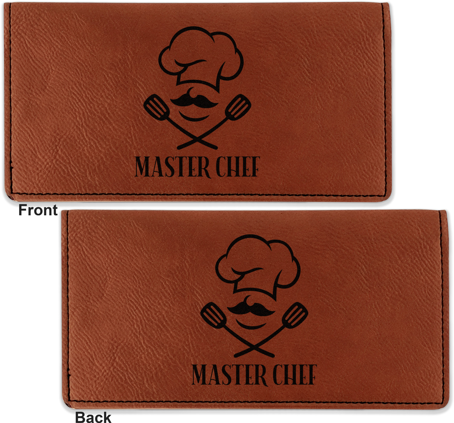 Go into our design center to start personalizing. Your checkbook cover will be laser engraved, making the graphic or text a black color. Choose a fun saying, monogram, or font to go on your checkbook cover. You have the opportunity to do it double or single sided.