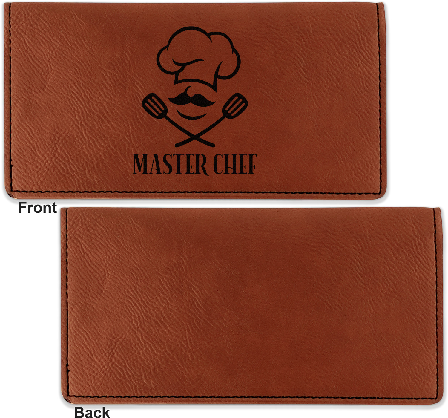 Go into our design center to start personalizing. Your checkbook cover will be laser engraved, making the graphic or text a black color. Choose a fun saying, monogram, or font to go on your checkbook cover. You have the opportunity to do it double or single sided.