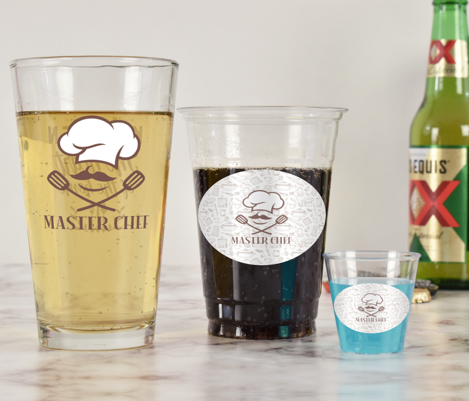 With these glasses you will get your choice of 2 content items on them. Perfect for company promotion or if you own a small restaurant or bar order these to perfectly match your business. Once designed we will print your design directly onto the glass and then a clear coat applied over it to ensure the print lasts for years to come.