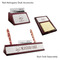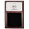Crafted from a fine mahogany, this post it note holder is in the shade of a dark, cherry color. The dispenser itself is about 4.25 by 6.25 by 0.75 inches. You can place your 3 by 3 inch sticky notes in the indentation below the nameplate. We print your customization onto the nameplate that rests above the velvety indentation.