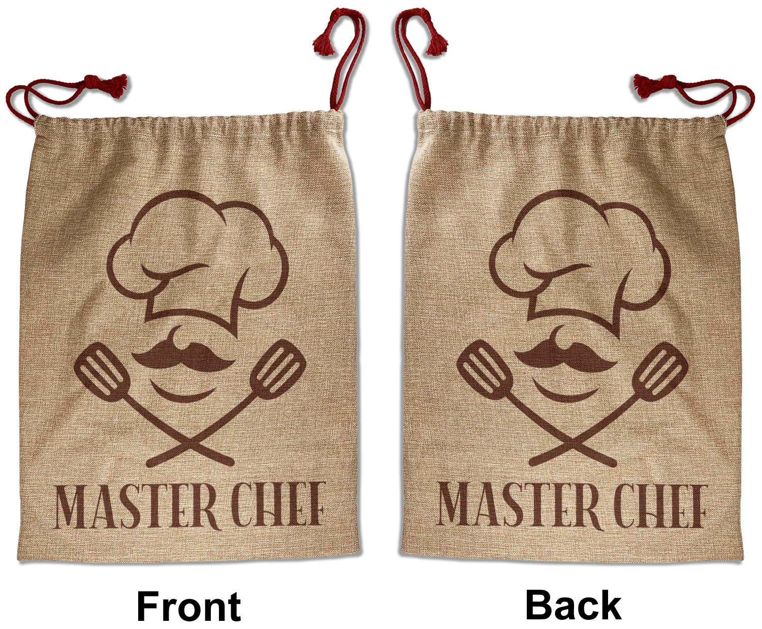 Our Santa sacks print your design on the burlap material giving it a nice rustic, natural design! The burlap material is also machine washable and wrinkle-free, so feel free to fold and store out Santa bags until the next time you need it! Secure your gifts with our red accent drawstring ties at the top of the sack so the mystery of your gift stays a surprise until Christmas day. We offer two types of printing- one side partial print or double-sided partial printing. Design and personalize your own Santa sack in time for the holidays!