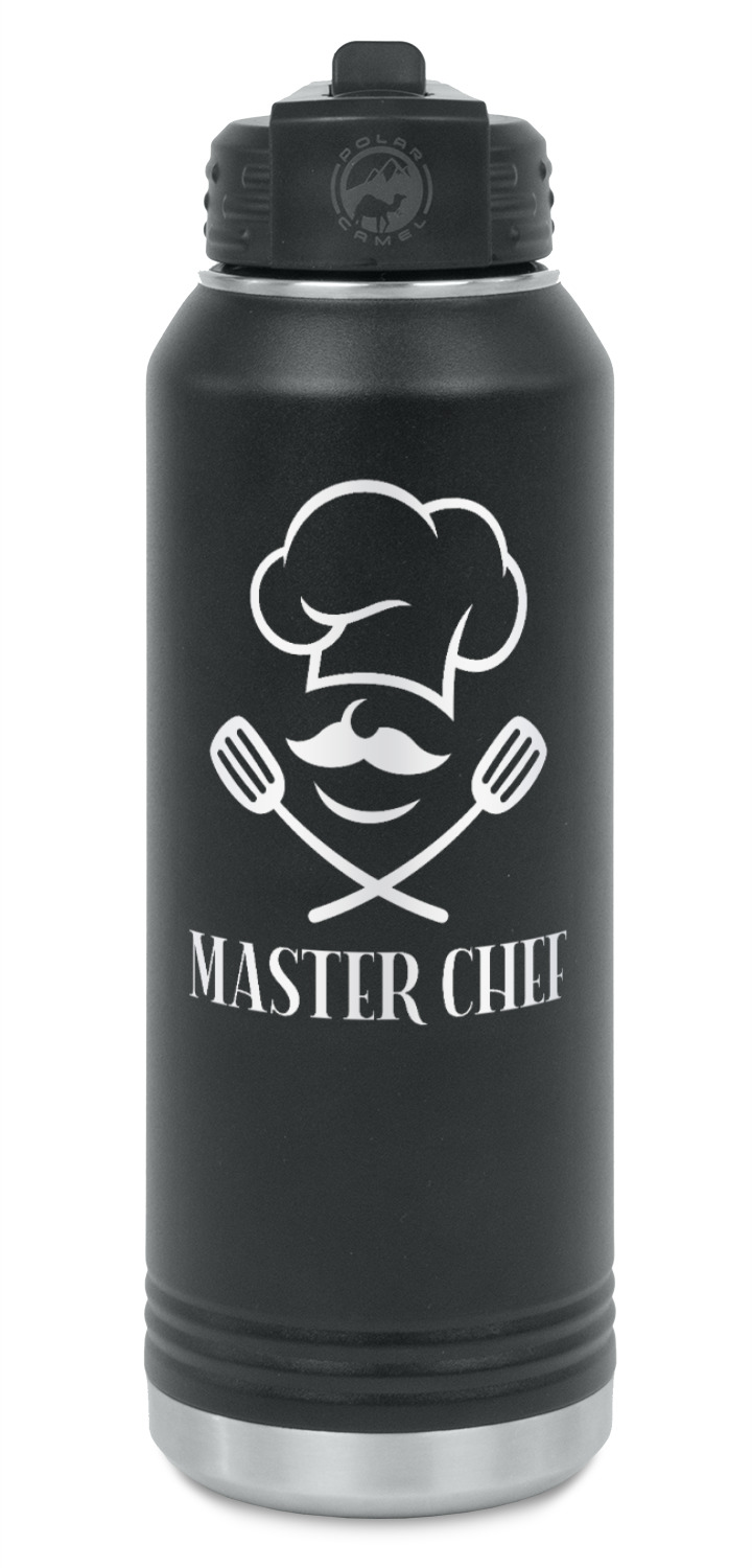 These 32 oz. water bottles are constructed from 18/8 durable food grade stainless steel. The inside of the water bottle is silver; while the outside is powder coated black