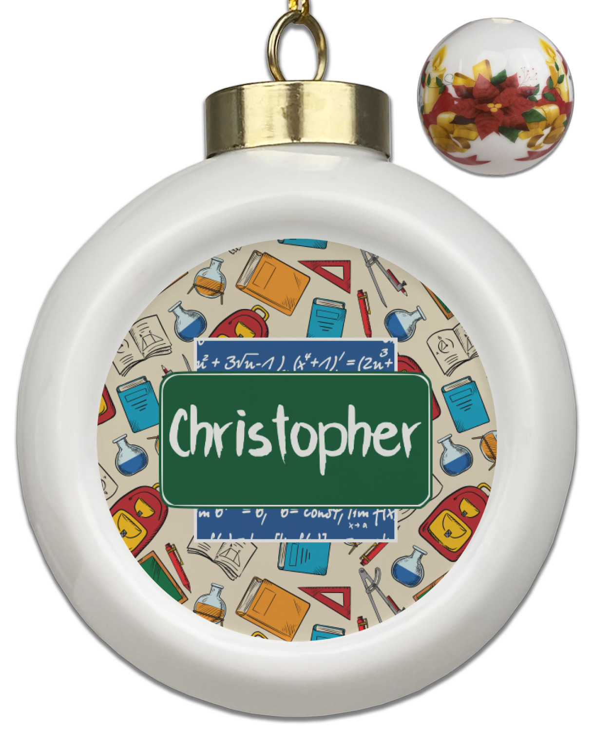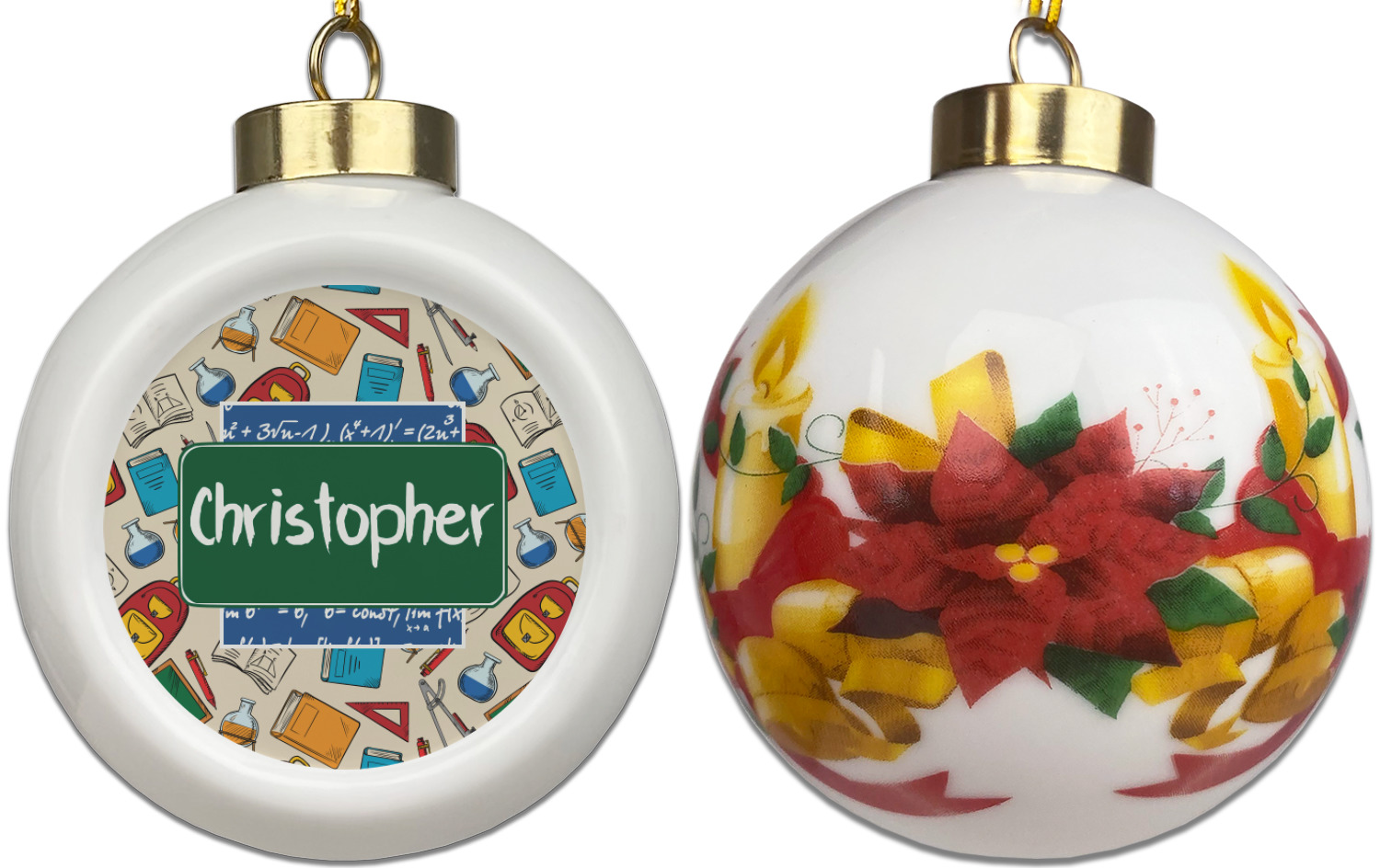 Our Christmas ornaments are a unique ceramic ball shape with a twist as it has a flat face to display your custom design! Select from one of our two design types - Christmas Tree or Poinsettia Garland - to adorn the curved back of your personal design. Each ornament measures 3H x 2.5W x 2D accompanied with a gold string accent for finishing touches to hang on your beautiful Christmas tree!