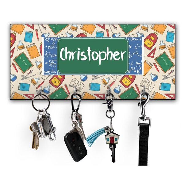This 11" x 5" key hanger is made of sturdy wood and has four metal hooks lining the bottom. This is the perfect size for a family with several drivers. Not only can you hang keys on it though, but pet leashes and other small items. The board is black on the sides and back and is printed with the design of your choice on the front.