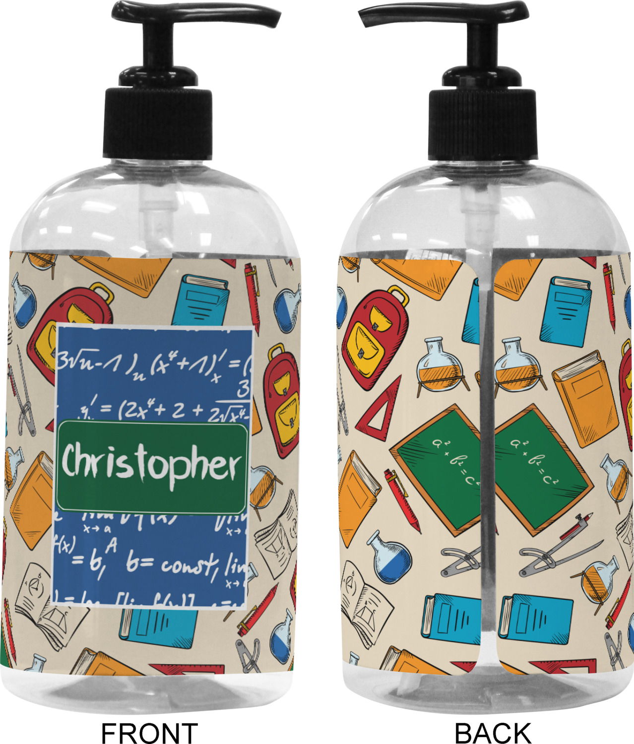 We adhere and wrap your custom printed design around the clear plastic bottle; there is a slight gap at the back for you to see the liquid level. Your design is printed on high gloss vinyl with eco-solvent inks and completely waterproof and will not fade or deteriorate over time. The vinyl is machine cut and adhered by hand to the clear plastic bottle.