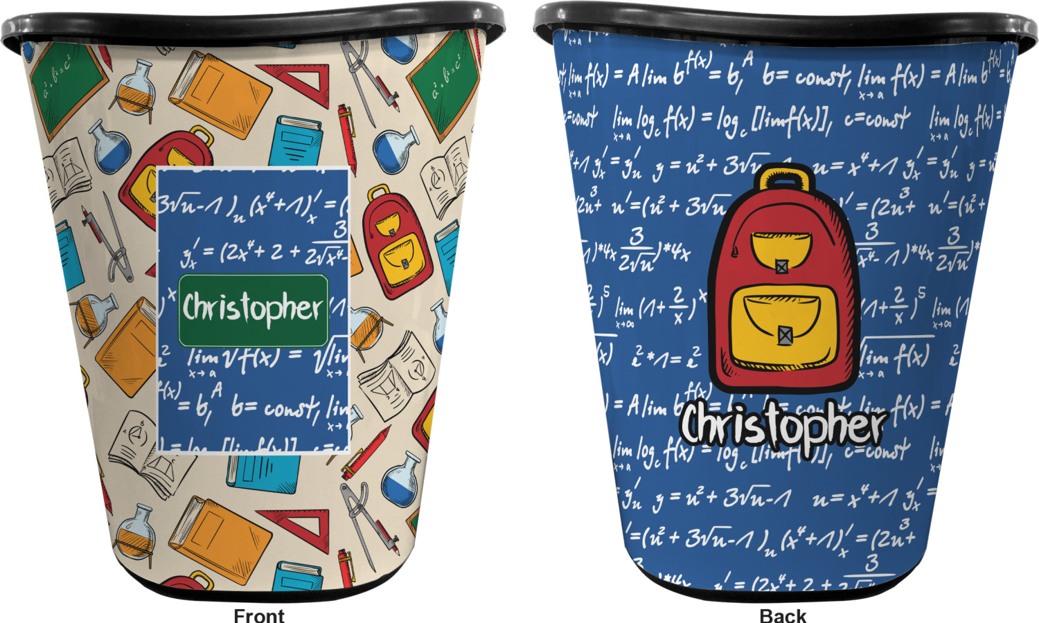 You can choose to purchase these decorative wastebaskets in either a white or a black color that will show on the base and the upper rim. Your customization is printed on a high-gloss, fine-quality vinyl adhesive, and you can choose to either have this adhesive applied to one side only or to both sides. As such, this plastic wastebasket can be single-sided or double-sided, depending on your creative vision. Your customization is printed using durable inks, making the design waterproof and resistant to fading over time.