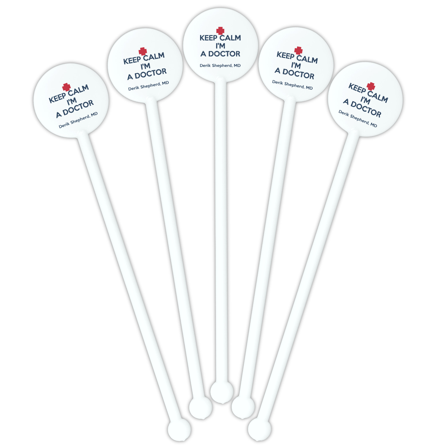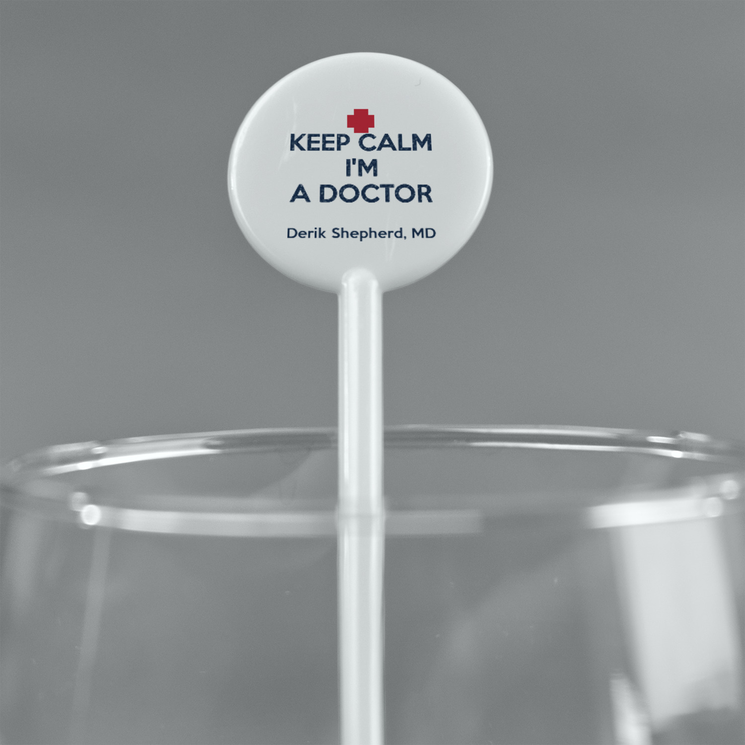 This design features a subtle background with different medical symbols. It is a navy blue with cream accents. There is a large ribbon where your personalization goes! The coordinating design features a quote that says "keep calm, I'm a doctor." This is such a fun design for any medical doctor!