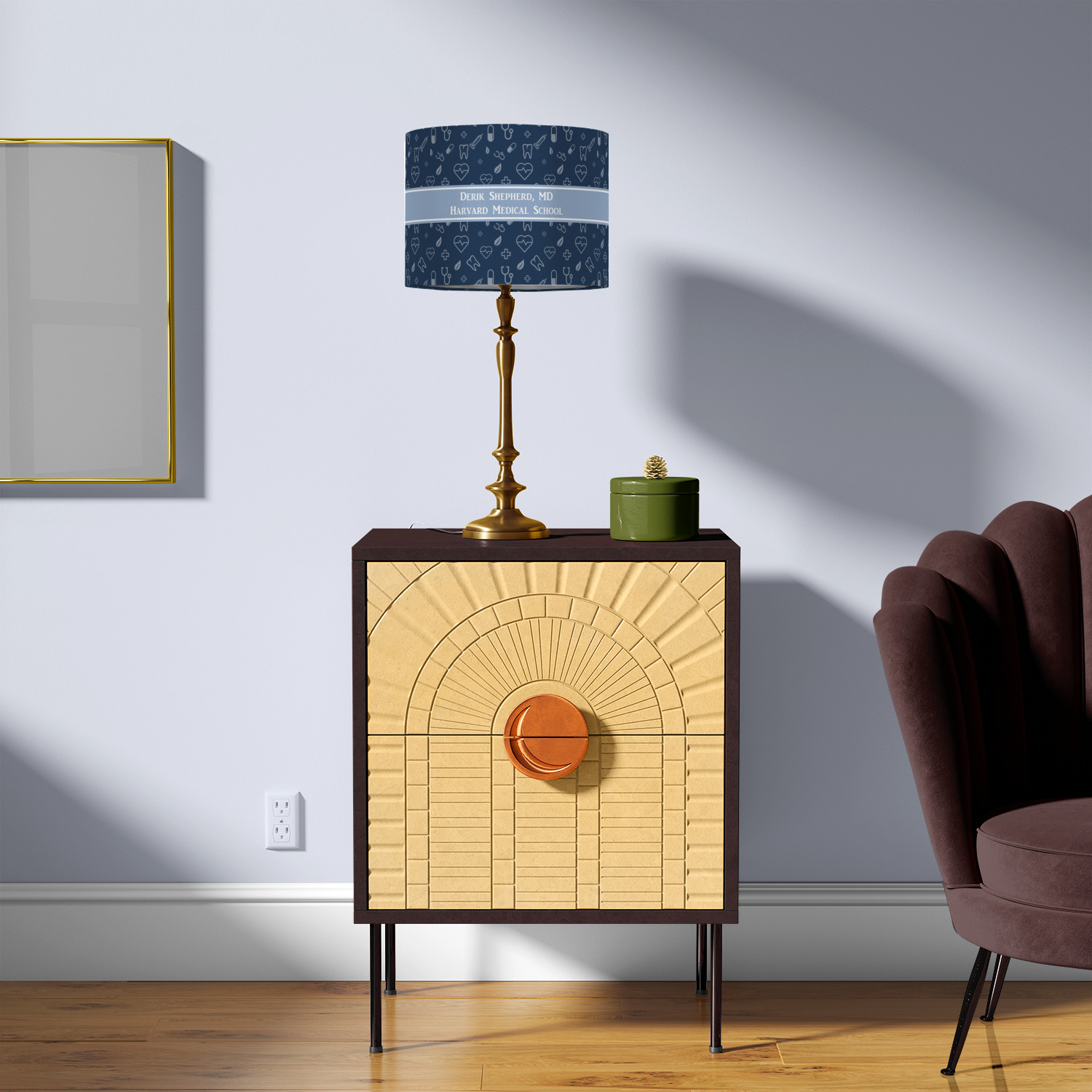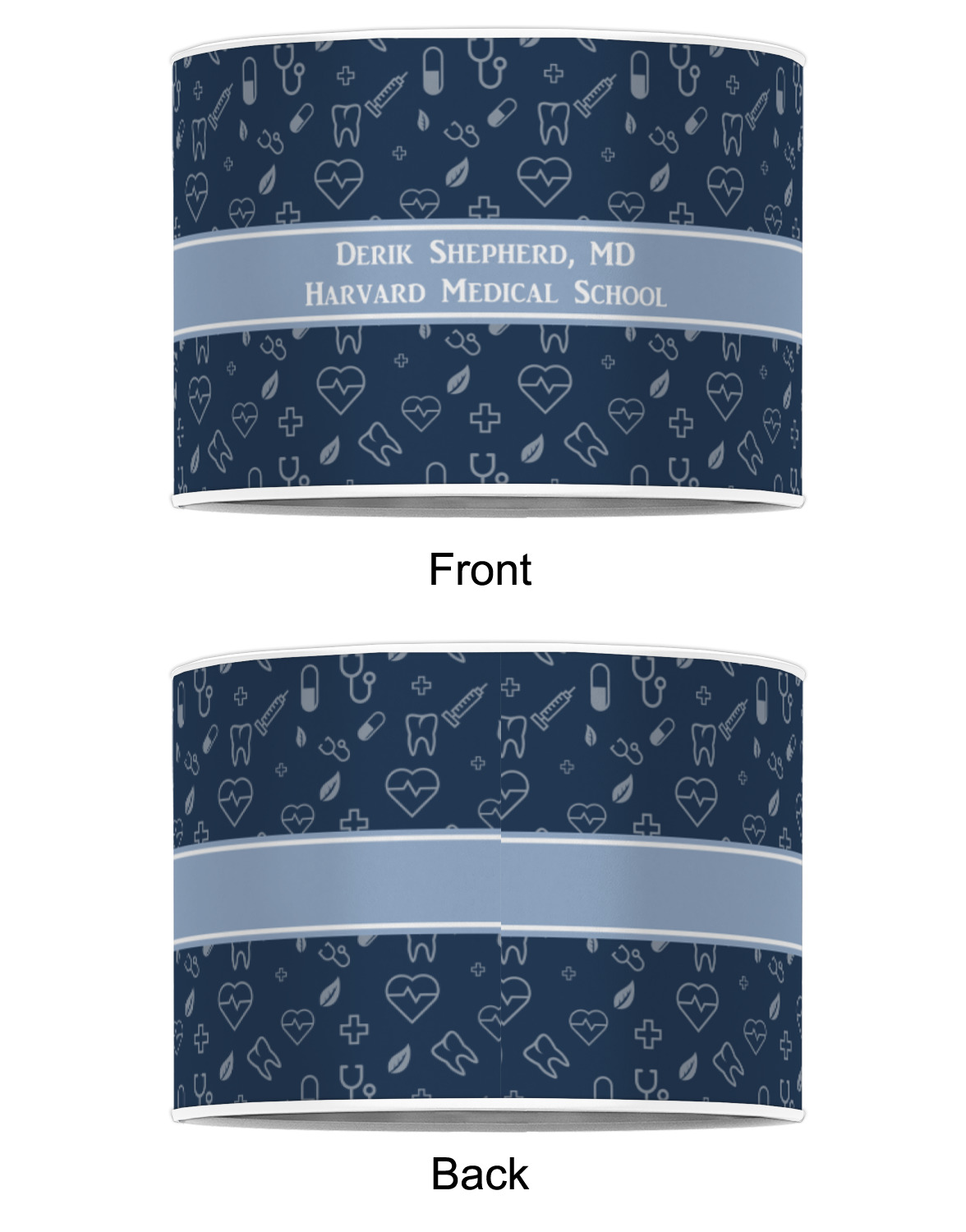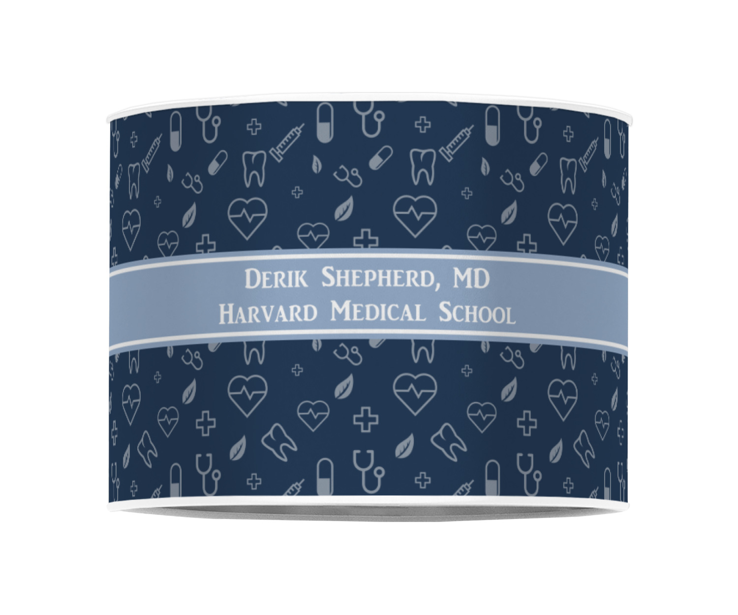 This design features a subtle background with different medical symbols. It is a navy blue with cream accents. There is a large ribbon where your personalization goes! The coordinating design features a quote that says "keep calm, I'm a doctor." This is such a fun design for any medical doctor!