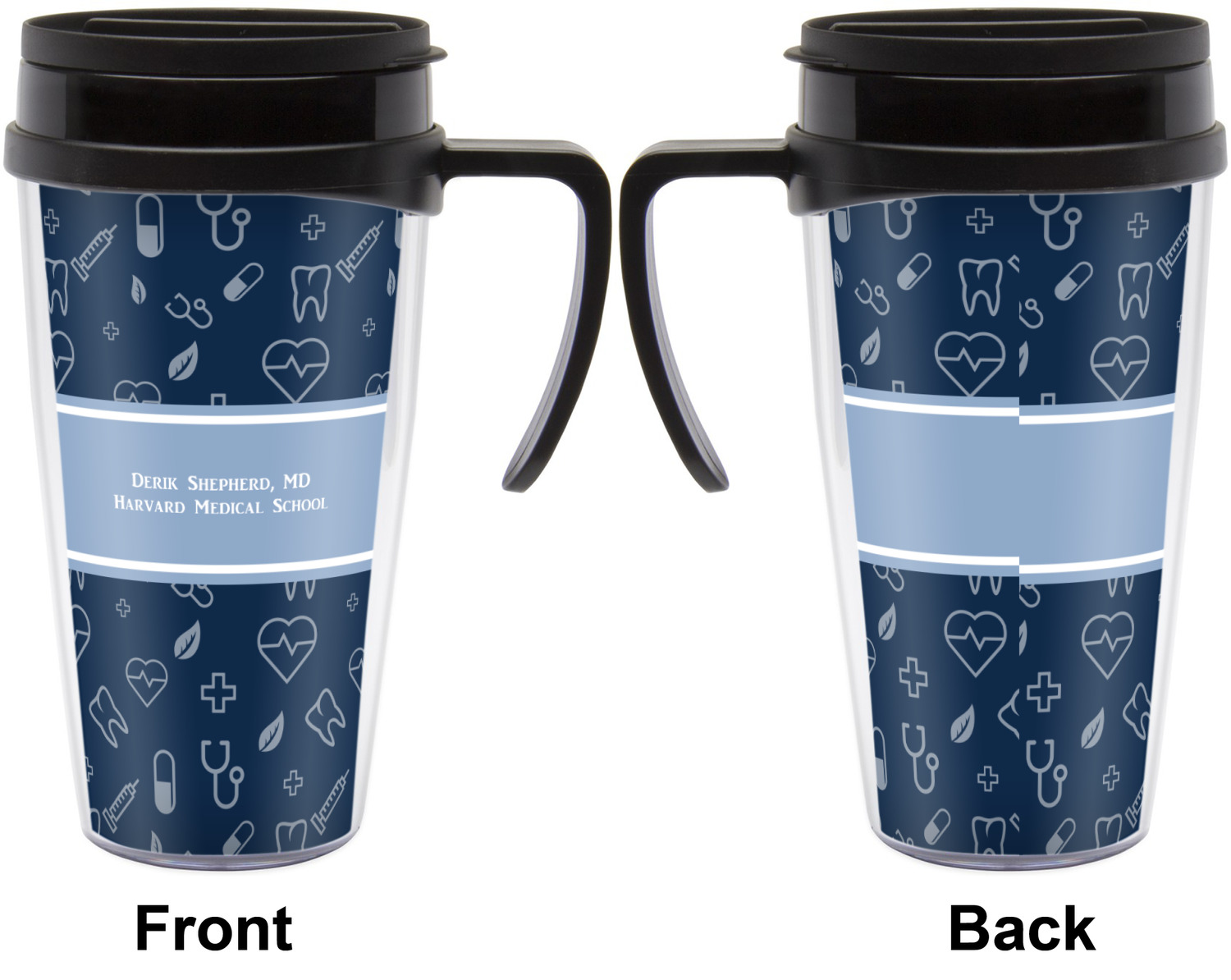 Keep your drink secure while on your daily commute with one of our personalized travel mugs! These travel mugs will add a splash of color and creativity to your kitchen counter-top, car cup holder, office desk, or wherever you choose to place them! With these custom mugs, you'll never have to settle for a boring, run-of-the-mill travel mug.
