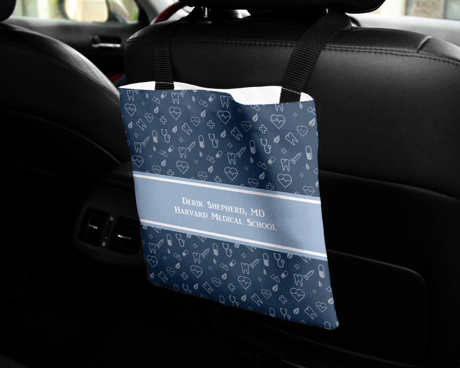 These car back seat organizers are sturdy tote-like bags, fabricated from a robust polyester, and features a single handle on the back side. The strap features an attachable velcro for easy attachment to headrests, grocery carts, car seats, and more. Simply undo the velcro, loop the strap around the headrest, reattach the velcro, and let the organizer hang from the front seat. These car organizers are the perfect means of increasing your backseat's legroom, while storing multiple items in one place for better accessibility. Each car back seat organizer measures at 10 by 10 inches, and features your personalized design printed across its front and back.