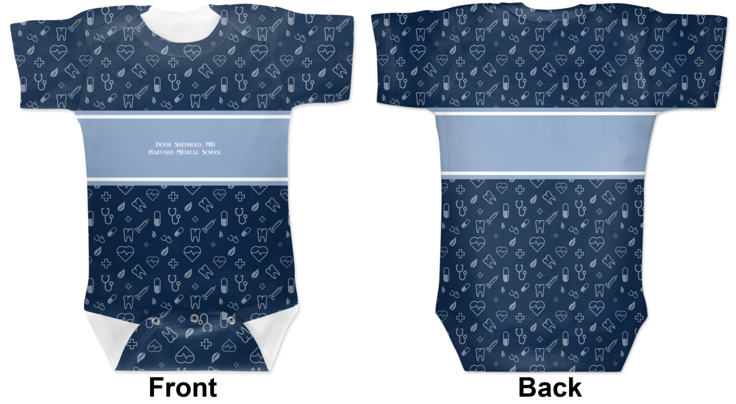 These cute baby bodysuits are made of stretchy, soft-to-the-touch polyester, making them very comfortable for your baby. These baby bodysuits also have snaps on the bottom to give easy access during changing times. Your personalization covers the entirety of this custom baby bodysuit, but the interior is white in color. As these are unisex baby bodysuits, they will work perfectly as baby girl bodysuits and baby boy bodysuits!