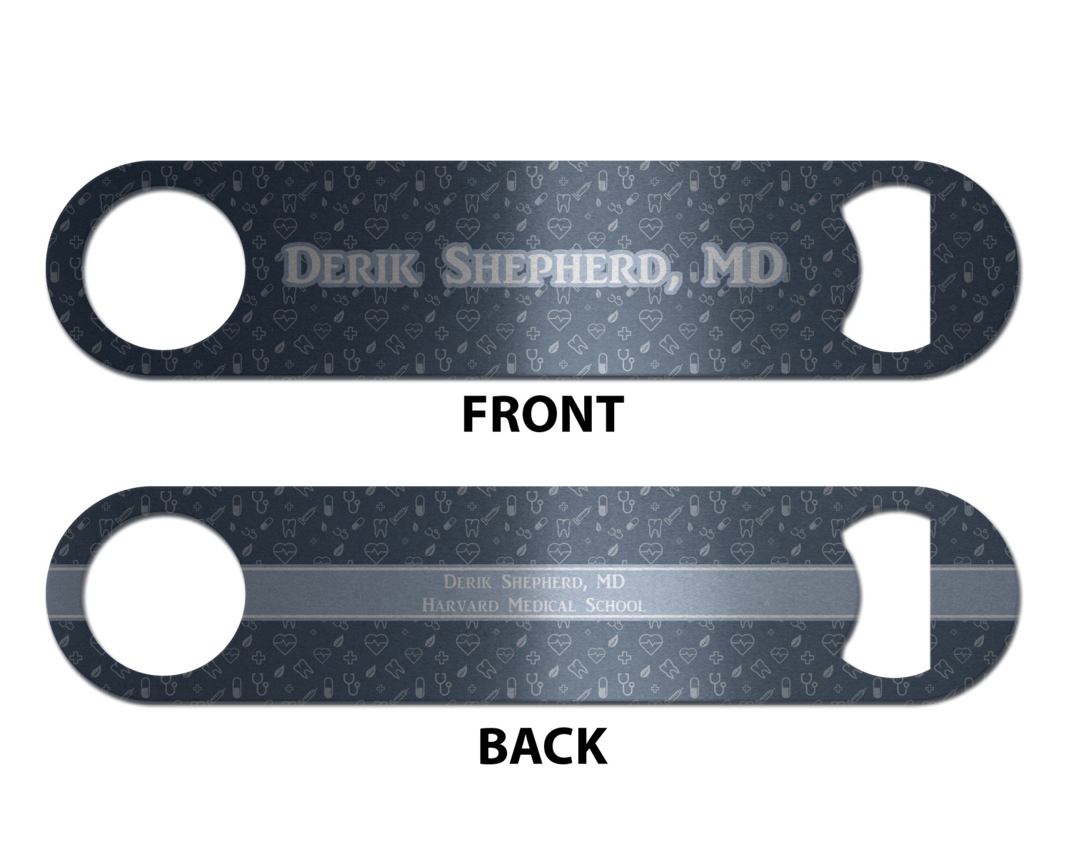 Stop struggling with the caps or your bottled beverages by purchasing one of our personalized bottle openers! These wrench-like custom bar blades are built to last. Customize one for your home's bar, or as a practical gift for a loved one!