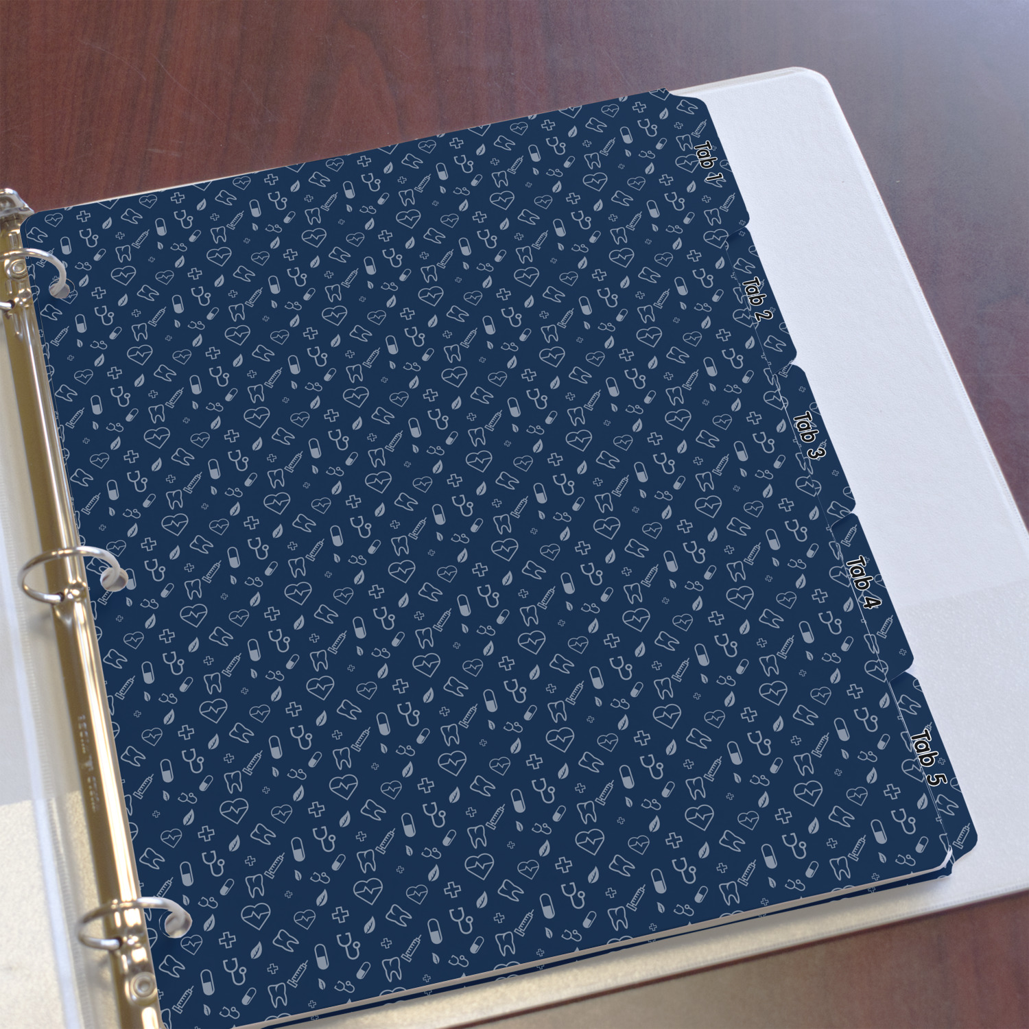 What better way to outfit your new custom personalized binder than a set of custom tab dividers? These can be made to compliment your binder design to take it to the next level!