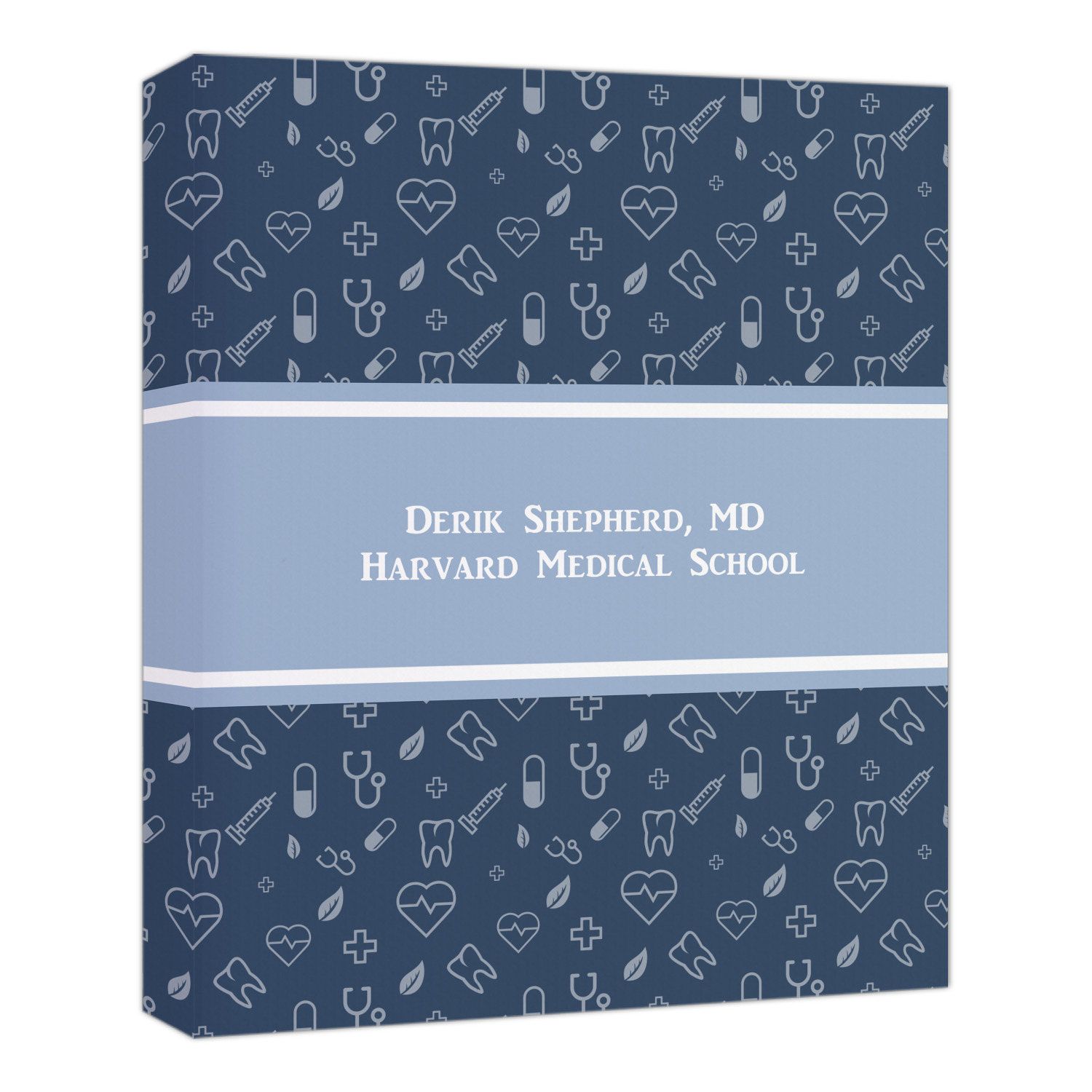 This design features a subtle background with different medical symbols. It is a navy blue with cream accents. There is a large ribbon where your personalization goes! The coordinating design features a quote that says "keep calm, I'm a doctor." This is such a fun design for any medical doctor!