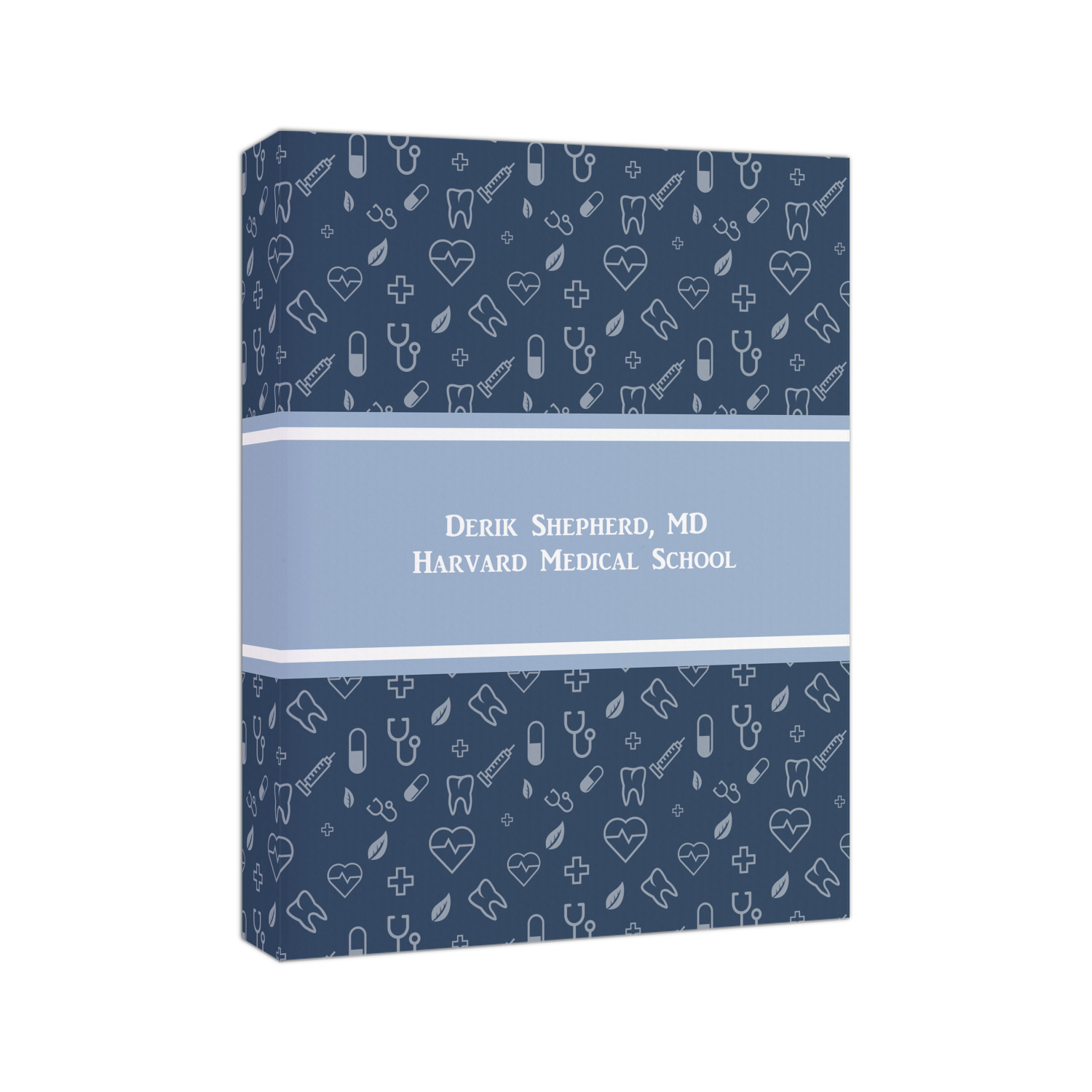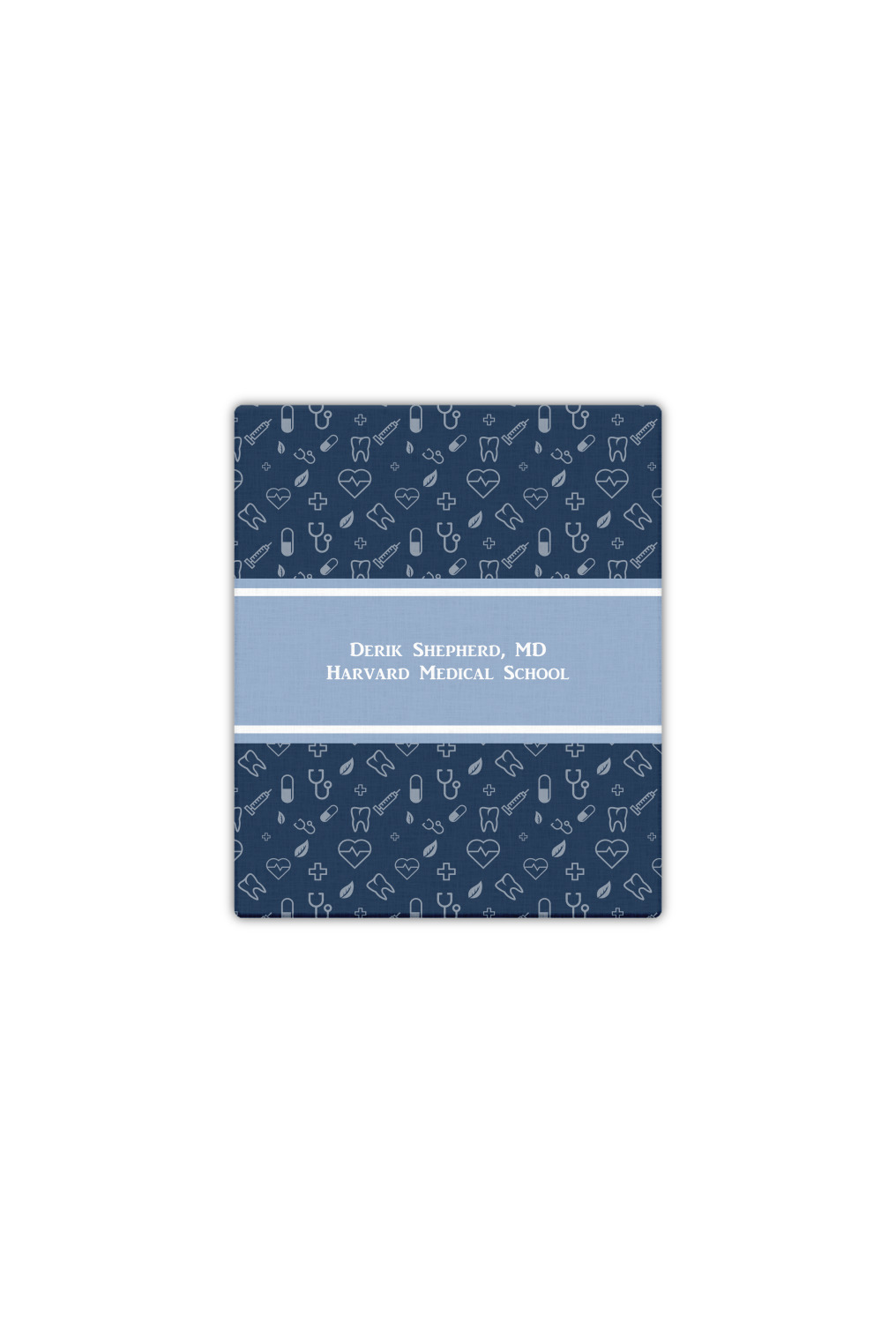 This design features a subtle background with different medical symbols. It is a navy blue with cream accents. There is a large ribbon where your personalization goes! The coordinating design features a quote that says "keep calm, I'm a doctor." This is such a fun design for any medical doctor!