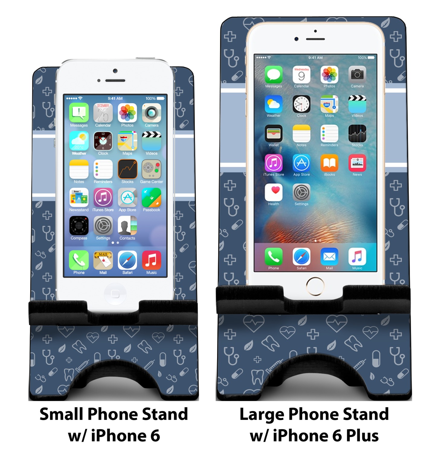 To meet your needs, we offer four variations of this IPhone stand. The backboard of the first version is shaped as a plain, yet sleek rectangle, and is available in two sizes. Our smaller size is approximately 4 by 3.25 by 7 inches, while the larger model is 4 by 3.77 by 8.5 inches. Alongside this model, we also provide you with a more decorative option. The upper part of our second version features a curved edge, for a classy, suave appearance. This phone holder is also sold in two sizes: a smaller version, which is 4 by 3.25 by 7 inches, and our larger model, which is 4 by 3.77 by 8.5 inches. Both models will support large phones, but the larger model is better if you wish to proudly display your personalized design.