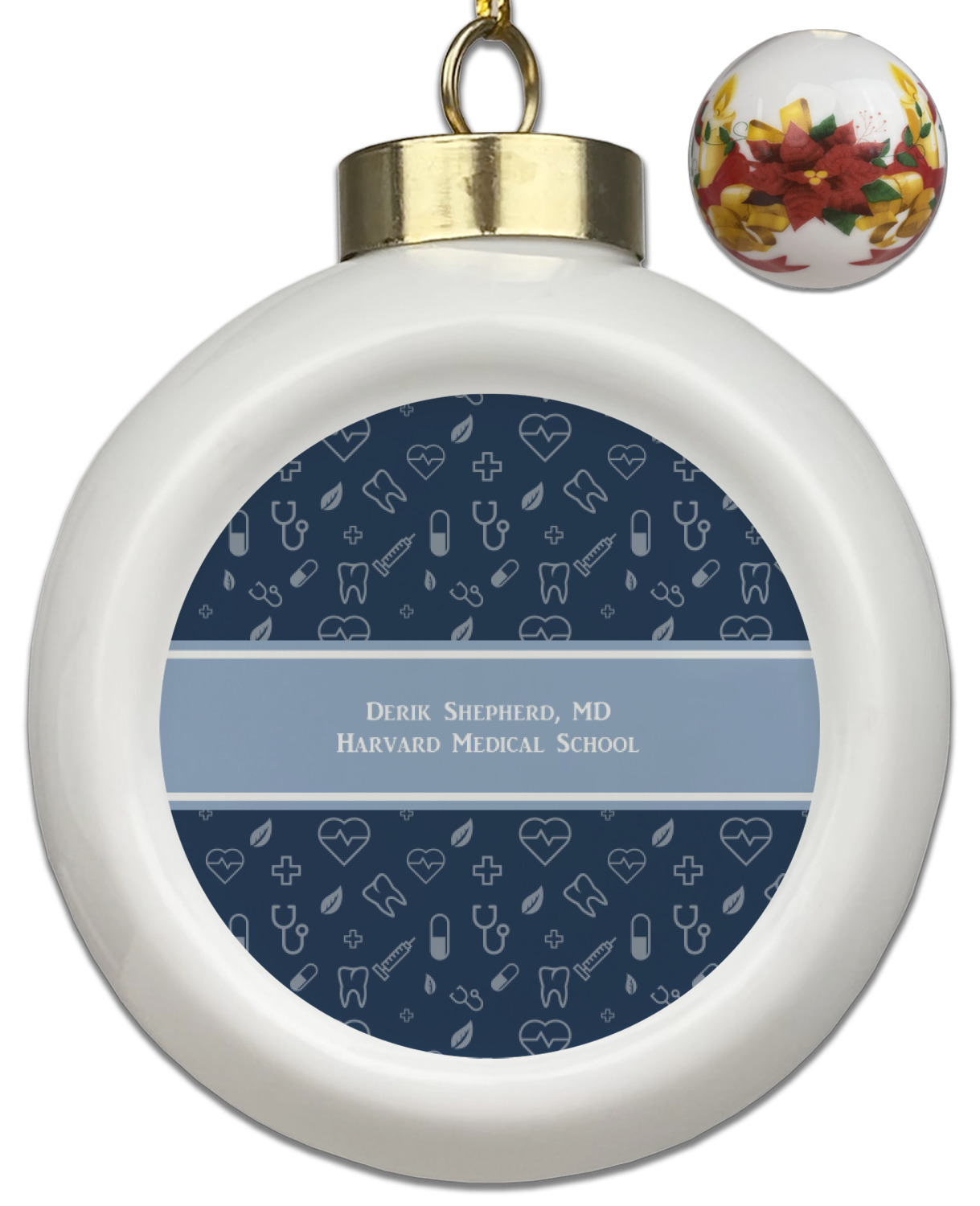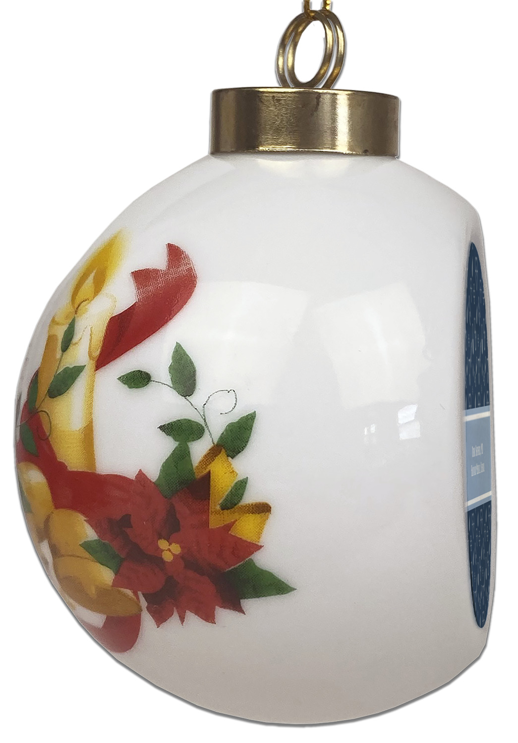 Our Christmas ornaments are a unique ceramic ball shape with a twist as it has a flat face to display your custom design! Select from one of our two design types - Christmas Tree or Poinsettia Garland - to adorn the curved back of your personal design. Each ornament measures 3H x 2.5W x 2D accompanied with a gold string accent for finishing touches to hang on your beautiful Christmas tree!