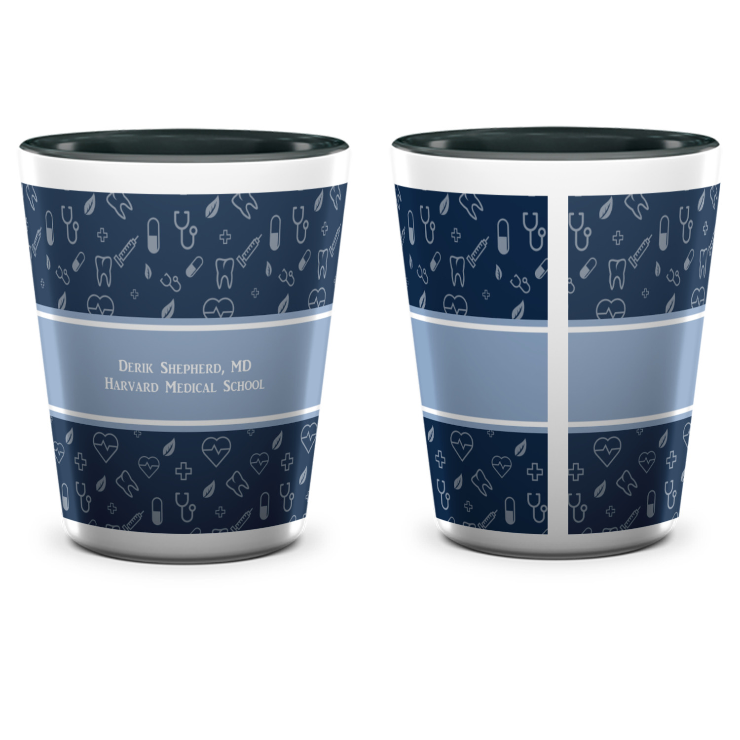 Made from ceramic these shot glasses are printed in full color with the design of your choice. These are a standard 1.5oz size and stand 2.25" tall. Available in a full white ceramic or a two-tone with a black color inside the shot glass. Buy a single or a set of 4, all of which can be designed separately to get you just what you want and need.