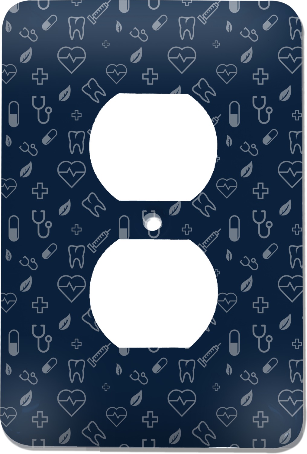 These outlet covers are made from a sturdy metal and display your design across its face. A satin finish coats the design to give it a finished look. The center of this outlet plate cover has a small hole to accommodate a screw upon installation. With your purchase of this decorative outlet cover, we include one screw. This outlet plate is of a standard size, and measures at approximately 3.5 by 5 inches.
