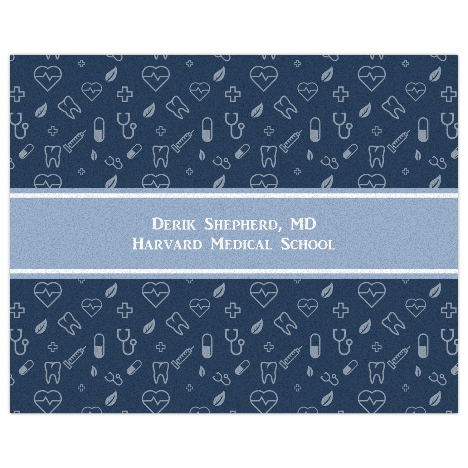 This design features a subtle background with different medical symbols. It is a navy blue with cream accents. There is a large ribbon where your personalization goes! The coordinating design features a quote that says "keep calm, I'm a doctor." This is such a fun design for any medical doctor!