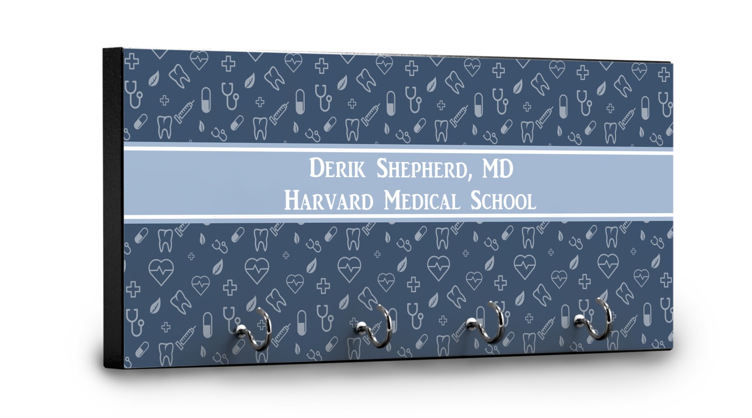 This 11" x 5" key hanger is made of sturdy wood and has four metal hooks lining the bottom. This is the perfect size for a family with several drivers. Not only can you hang keys on it though, but pet leashes and other small items. The board is black on the sides and back and is printed with the design of your choice on the front.