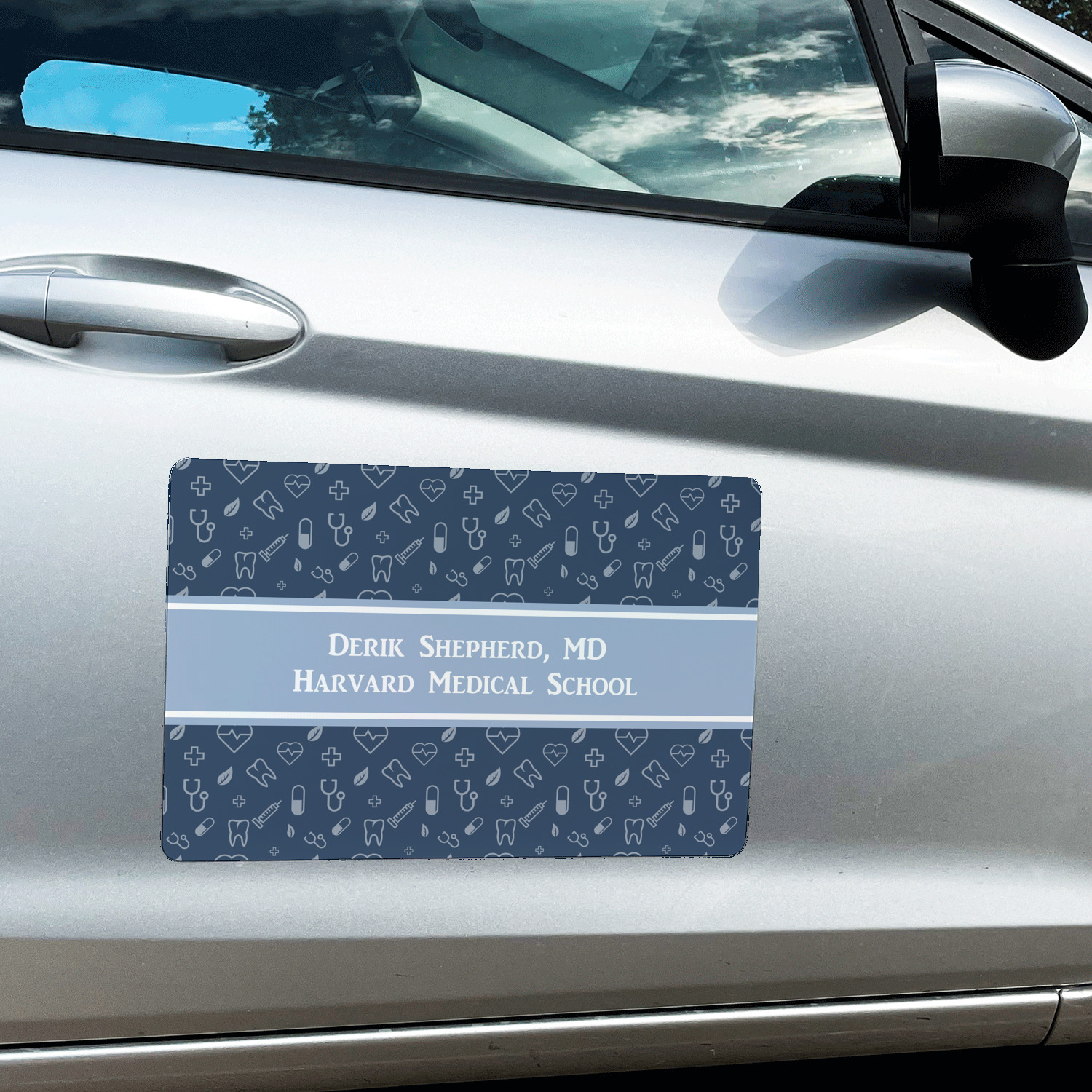 Your personalized large car magnet measures at 18 inches wide by 12 inches tall. They are 1 millimeter thick, which is considered, within the industry, as the ideal thickness for automobile magnets. The magnetic car decals will adhere to any smooth, ferrous metal surface of your cars body, such as the trunk door or a side panel.