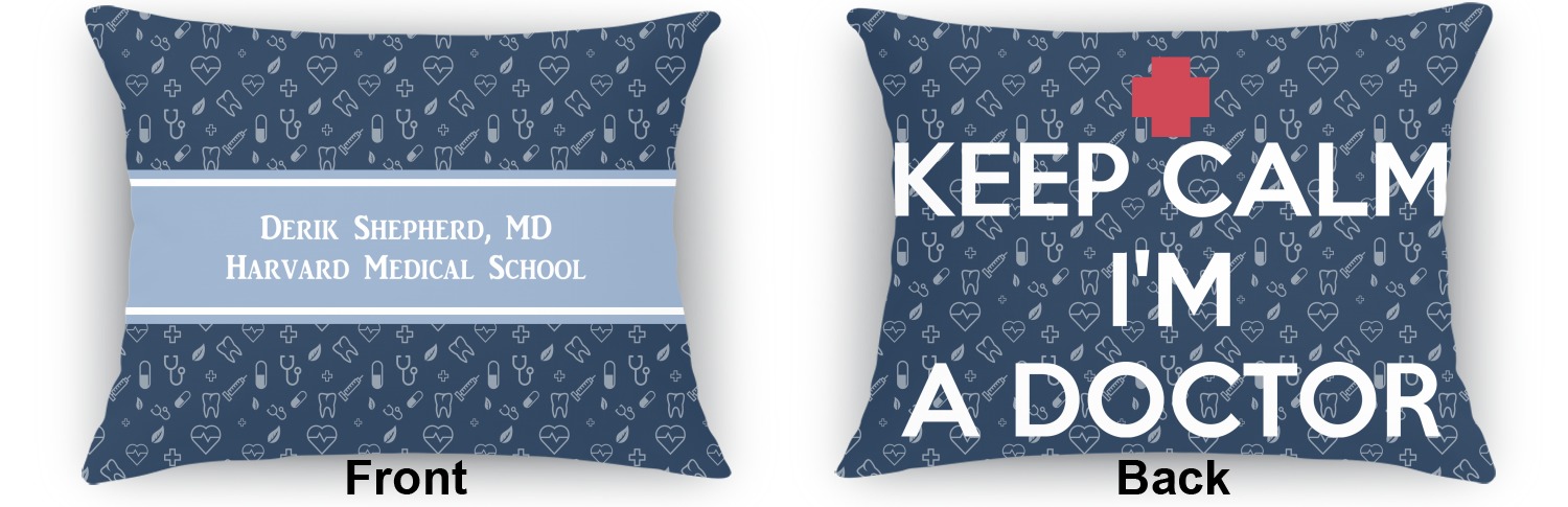 This design features a subtle background with different medical symbols. It is a navy blue with cream accents. There is a large ribbon where your personalization goes! The coordinating design features a quote that says "keep calm, I'm a doctor." This is such a fun design for any medical doctor!