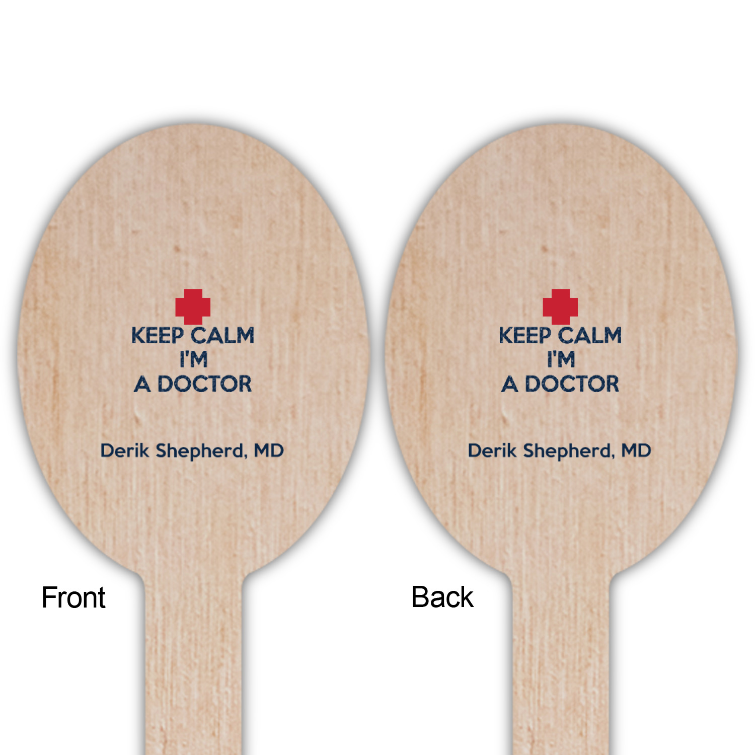 This design features a subtle background with different medical symbols. It is a navy blue with cream accents. There is a large ribbon where your personalization goes! The coordinating design features a quote that says "keep calm, I'm a doctor." This is such a fun design for any medical doctor!
