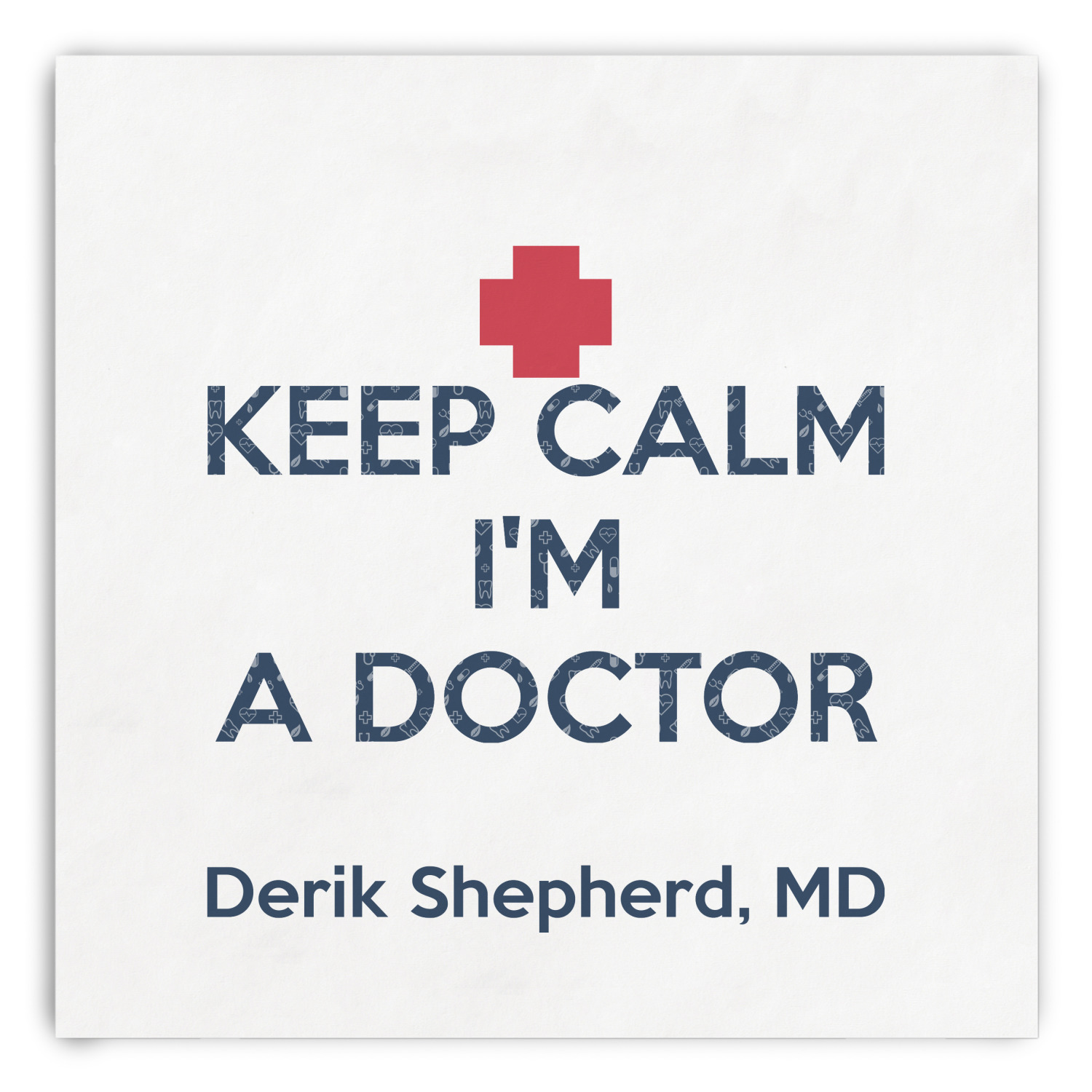 This design features a subtle background with different medical symbols. It is a navy blue with cream accents. There is a large ribbon where your personalization goes! The coordinating design features a quote that says "keep calm, I'm a doctor." This is such a fun design for any medical doctor!