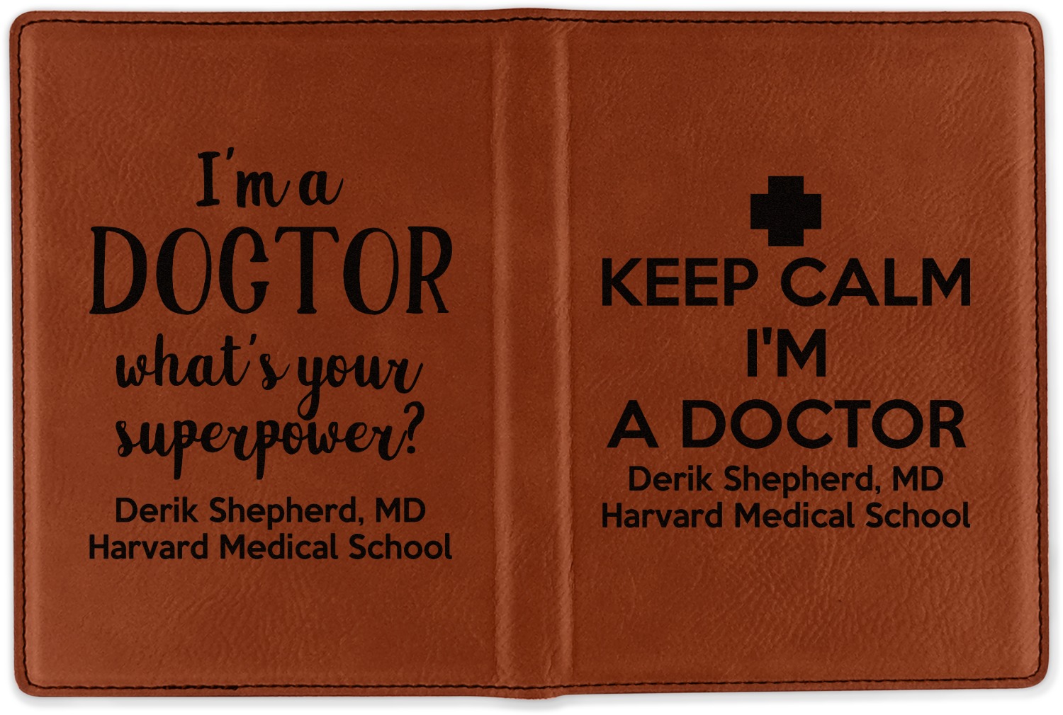 Although they are faux leather, these passport holders feel great in your hand. They are laser engraved either just on the front or the front and back. The image that is engraved onto your passport holder will be shades of black.