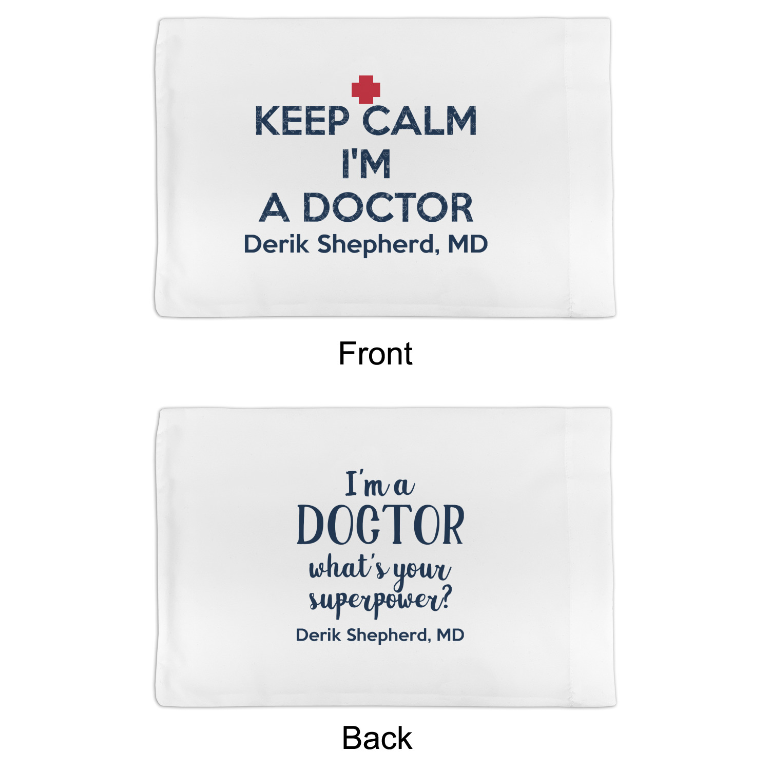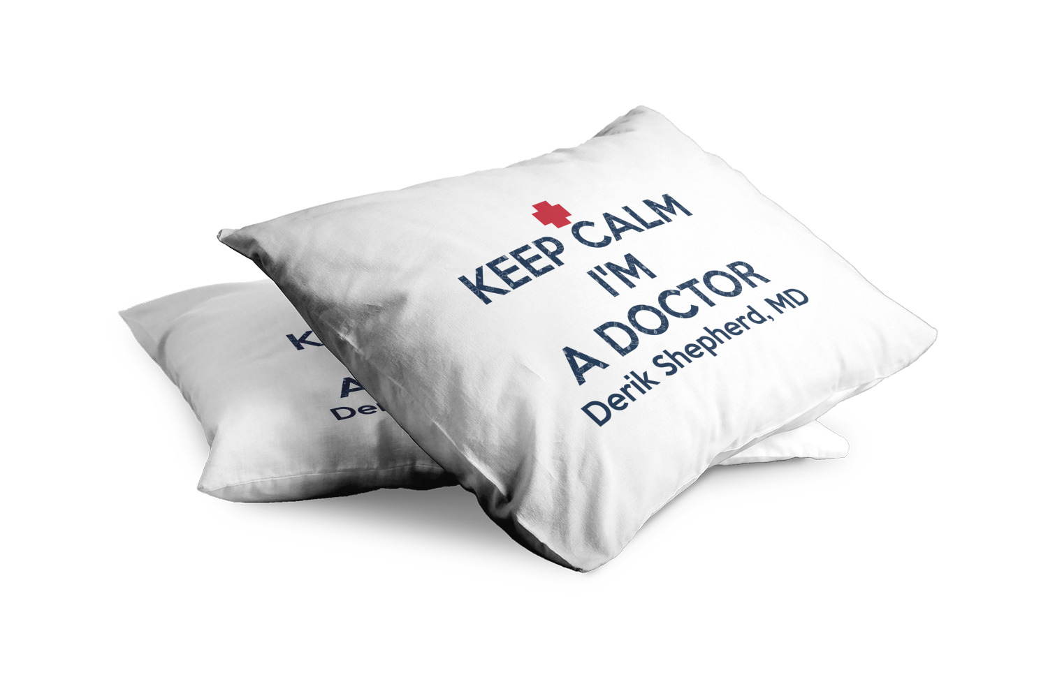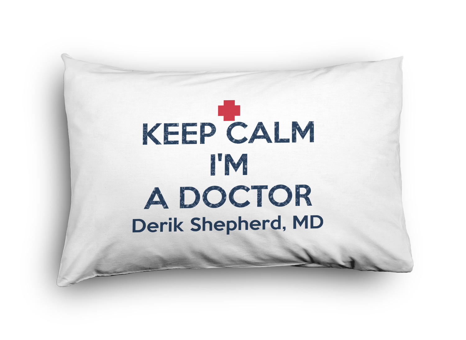 This design features a subtle background with different medical symbols. It is a navy blue with cream accents. There is a large ribbon where your personalization goes! The coordinating design features a quote that says "keep calm, I'm a doctor." This is such a fun design for any medical doctor!