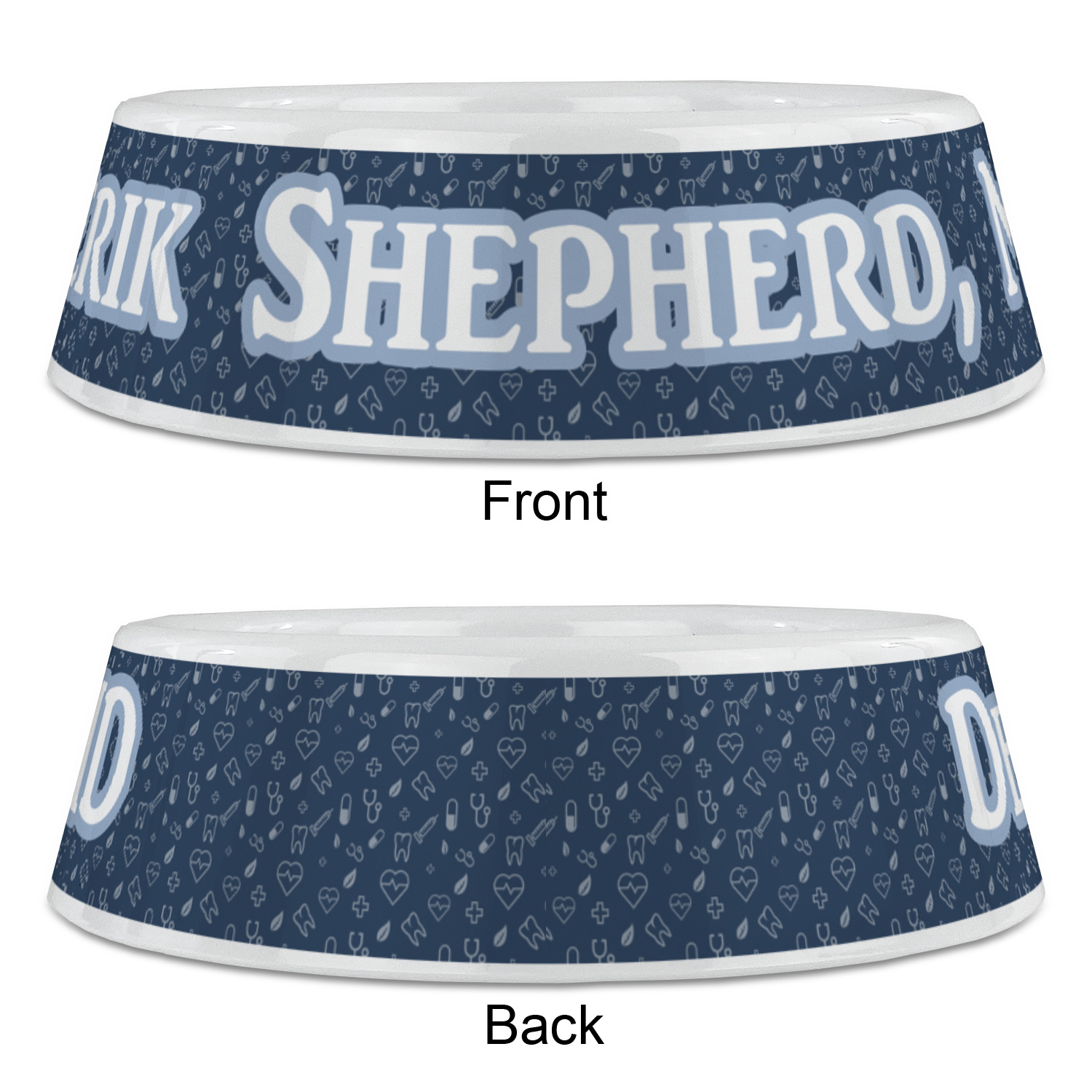 This design features a subtle background with different medical symbols. It is a navy blue with cream accents. There is a large ribbon where your personalization goes! The coordinating design features a quote that says "keep calm, I'm a doctor." This is such a fun design for any medical doctor!