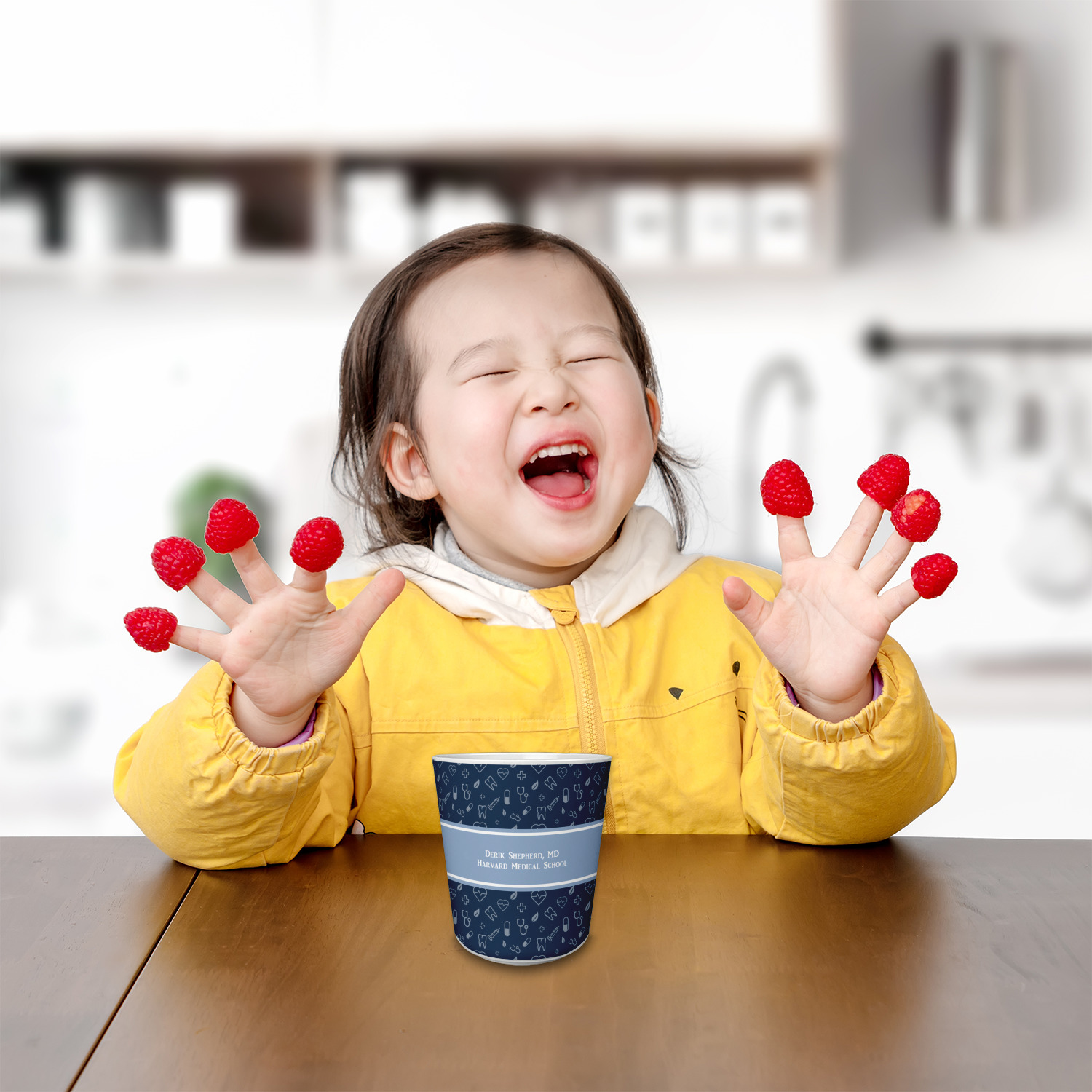 Made from a durable plastic, these tumbler cups are strong enough to withstand daily use and are perfect for young children. Each of these personalized plastic cups holds 6 ounces and measure at approximately 3" x 3" x 3.25". Place them in the bathroom as a rinsing cup, or give them to your kids during mealtimes. These 6 oz. plastic cups are BPA free, microwave and dishwasher safe, for your convenience. Your personalized design is displayed across the entire outside of this cup, while the inside is white in color to make your customization really stand out.