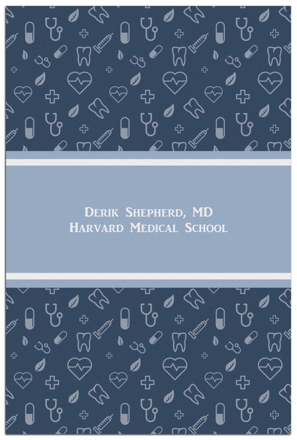 This design features a subtle background with different medical symbols. It is a navy blue with cream accents. There is a large ribbon where your personalization goes! The coordinating design features a quote that says "keep calm, I'm a doctor." This is such a fun design for any medical doctor!