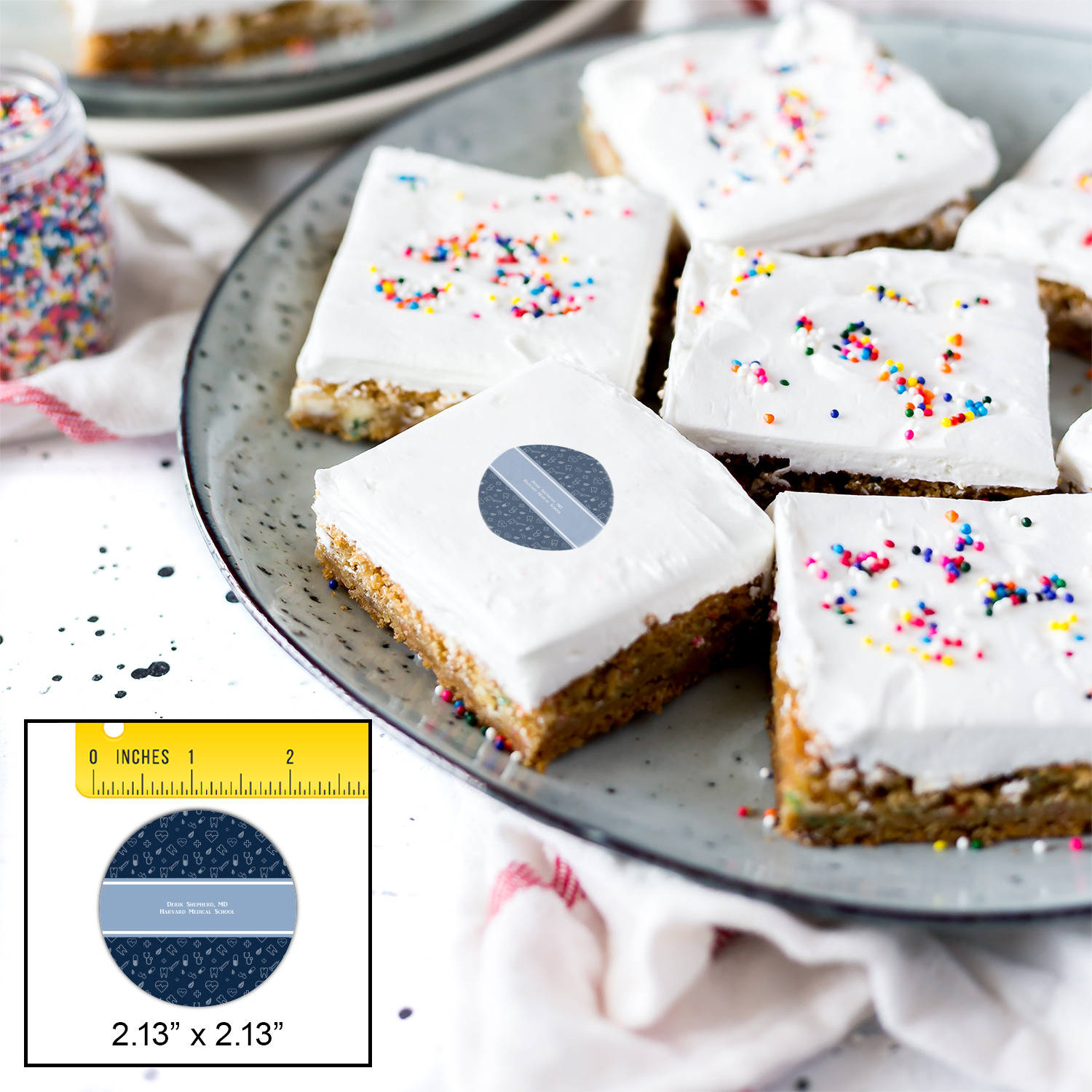 Your customized cookie toppers can be placed on top of any dessert with an icing top.The icing helps adhere the cookie topper to the dessert.