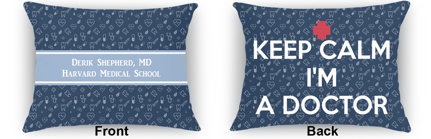 This design features a subtle background with different medical symbols. It is a navy blue with cream accents. There is a large ribbon where your personalization goes! The coordinating design features a quote that says "keep calm, I'm a doctor." This is such a fun design for any medical doctor!