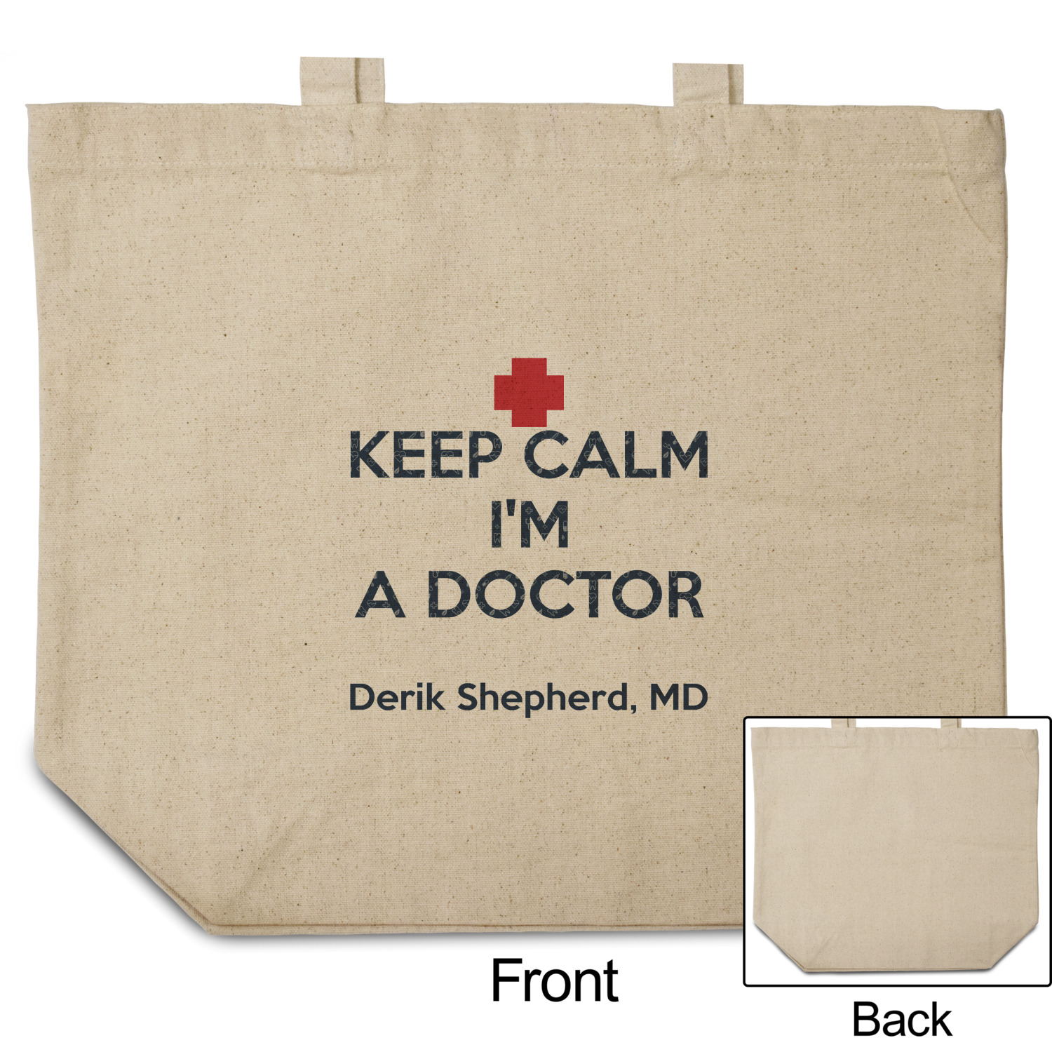 This design features a subtle background with different medical symbols. It is a navy blue with cream accents. There is a large ribbon where your personalization goes! The coordinating design features a quote that says "keep calm, I'm a doctor." This is such a fun design for any medical doctor!