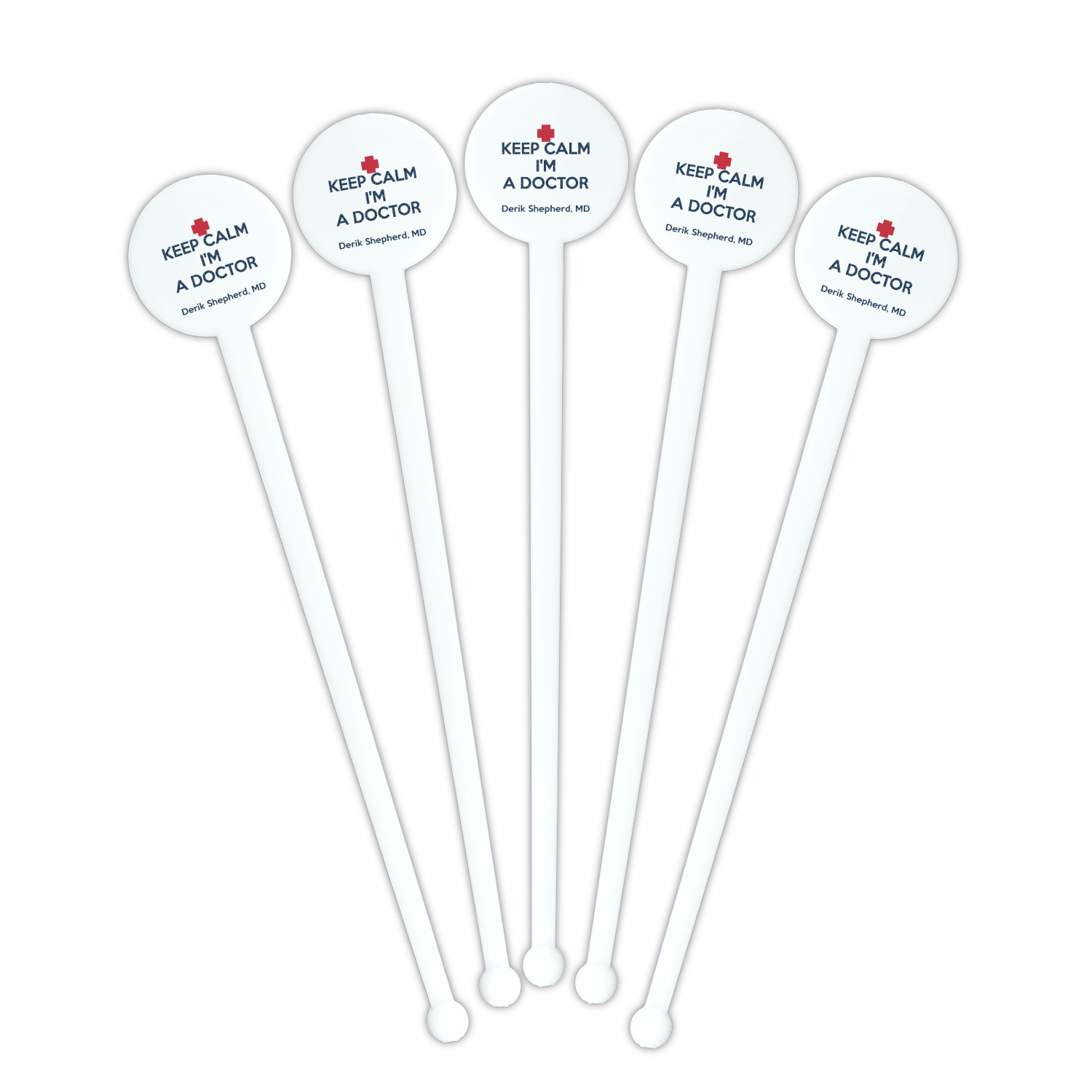This design features a subtle background with different medical symbols. It is a navy blue with cream accents. There is a large ribbon where your personalization goes! The coordinating design features a quote that says "keep calm, I'm a doctor." This is such a fun design for any medical doctor!