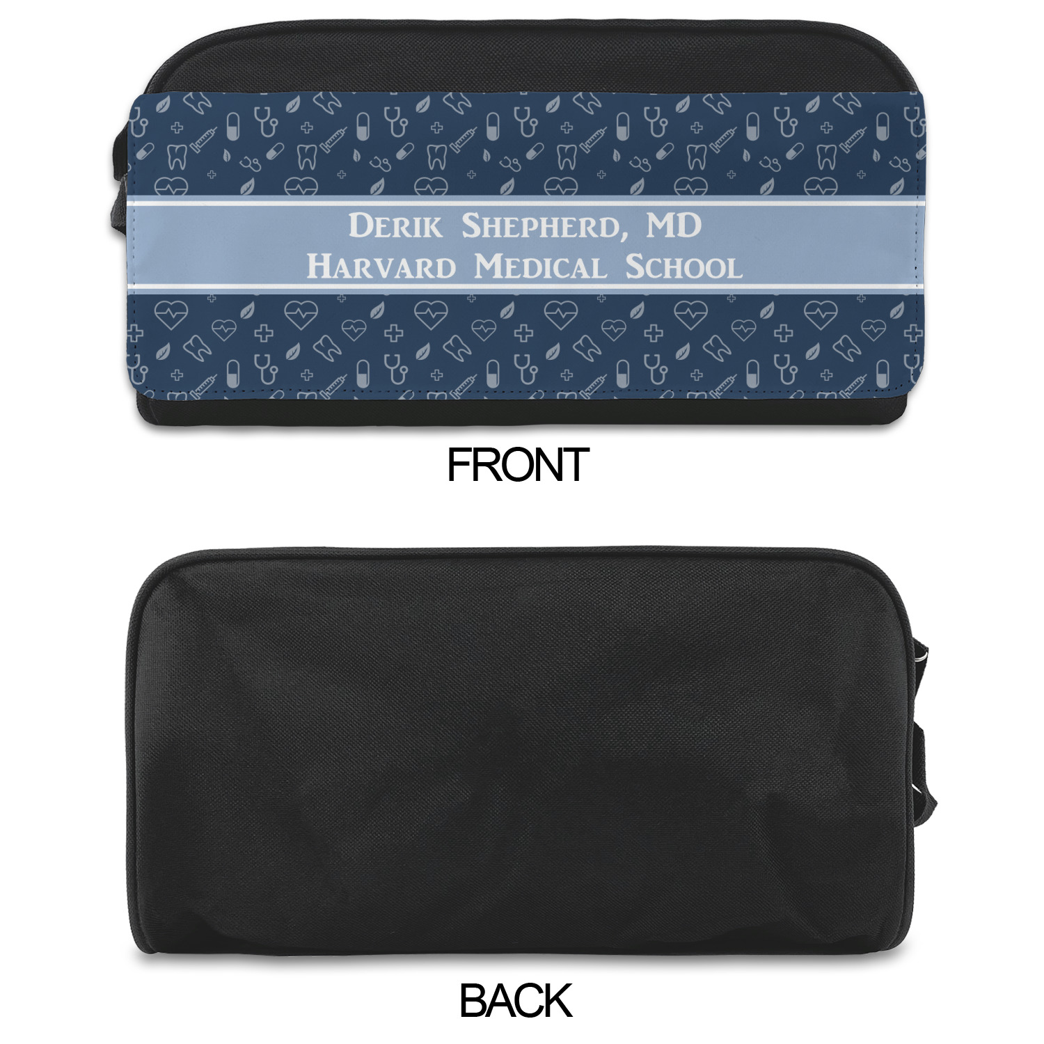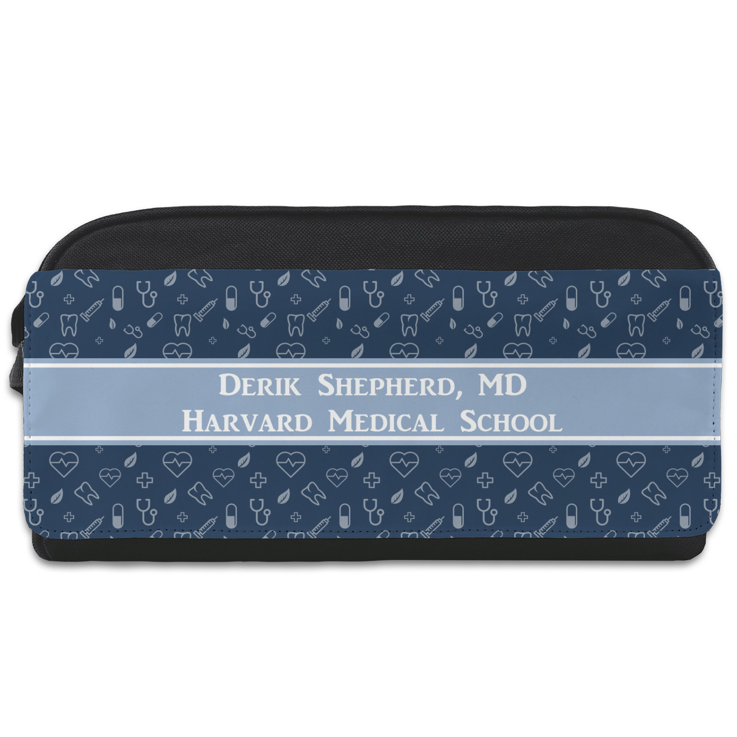This design features a subtle background with different medical symbols. It is a navy blue with cream accents. There is a large ribbon where your personalization goes! The coordinating design features a quote that says "keep calm, I'm a doctor." This is such a fun design for any medical doctor!