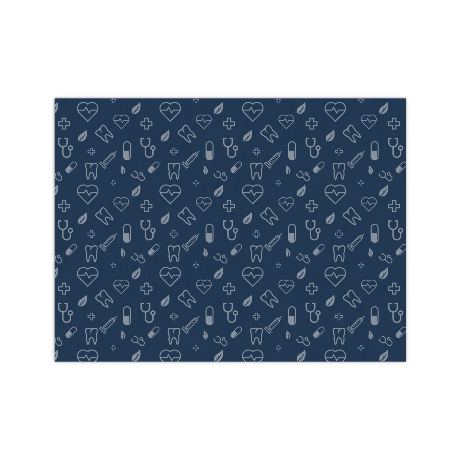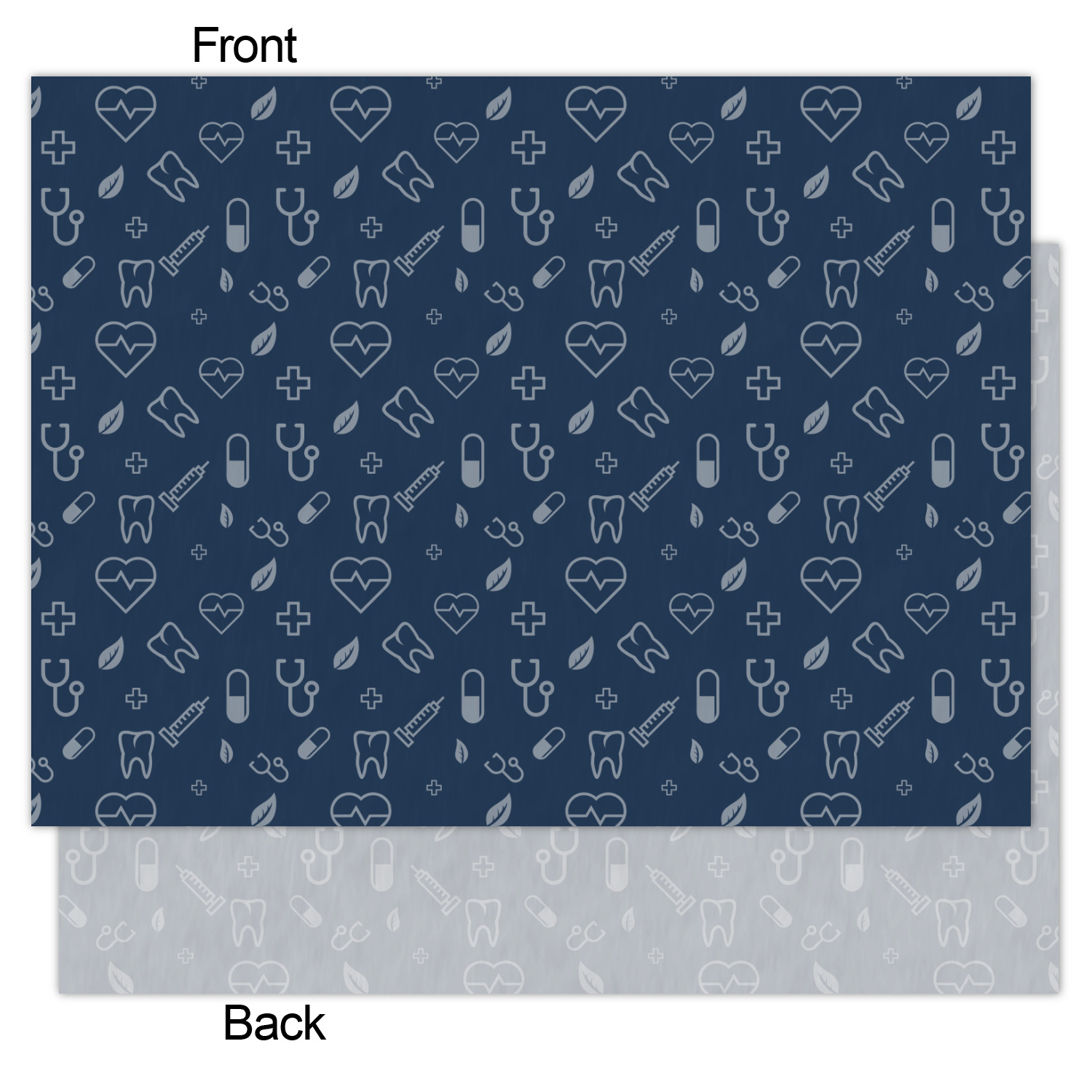 This design features a subtle background with different medical symbols. It is a navy blue with cream accents. There is a large ribbon where your personalization goes! The coordinating design features a quote that says "keep calm, I'm a doctor." This is such a fun design for any medical doctor!